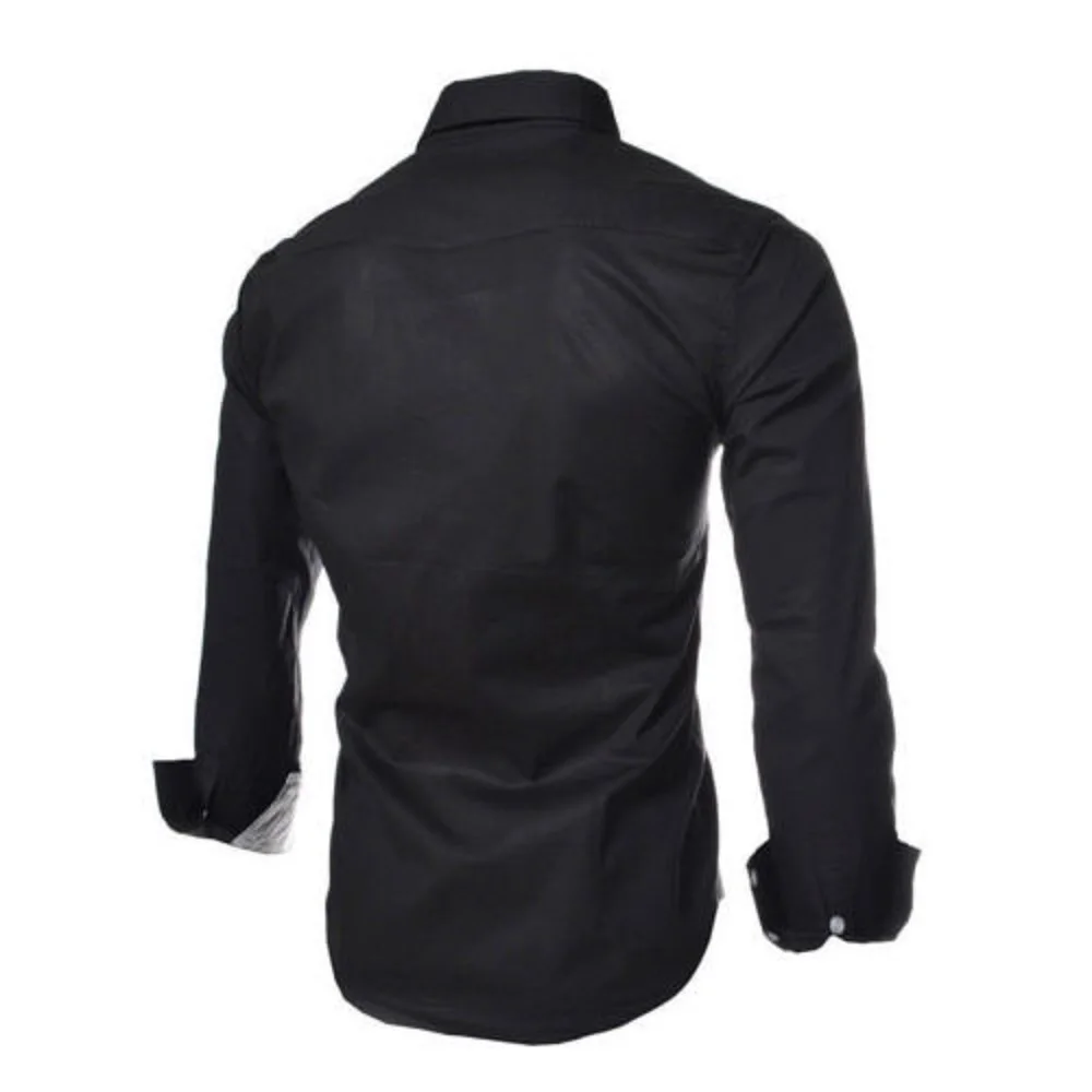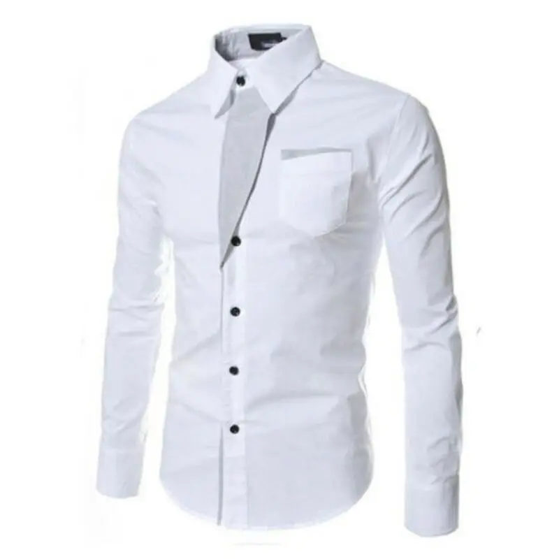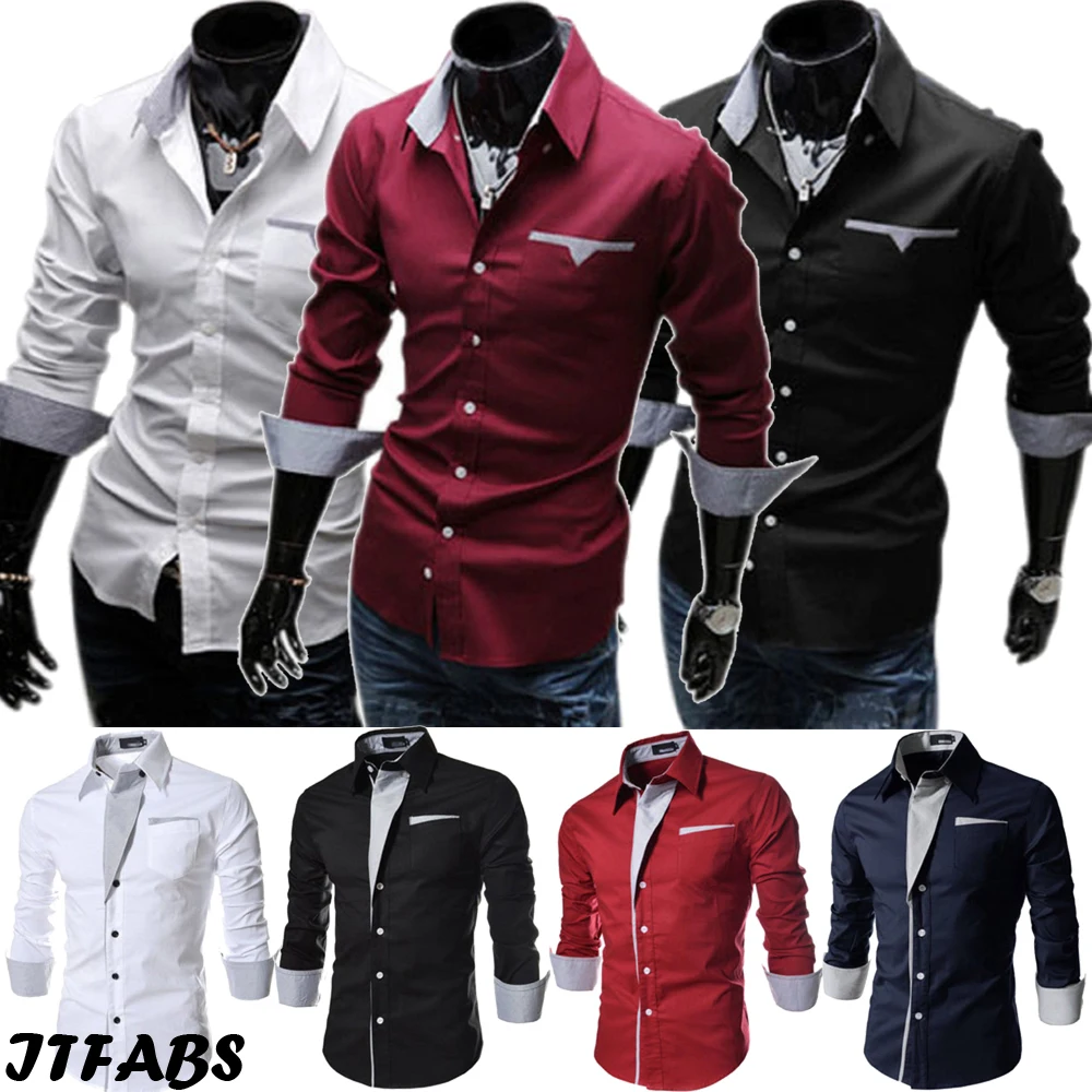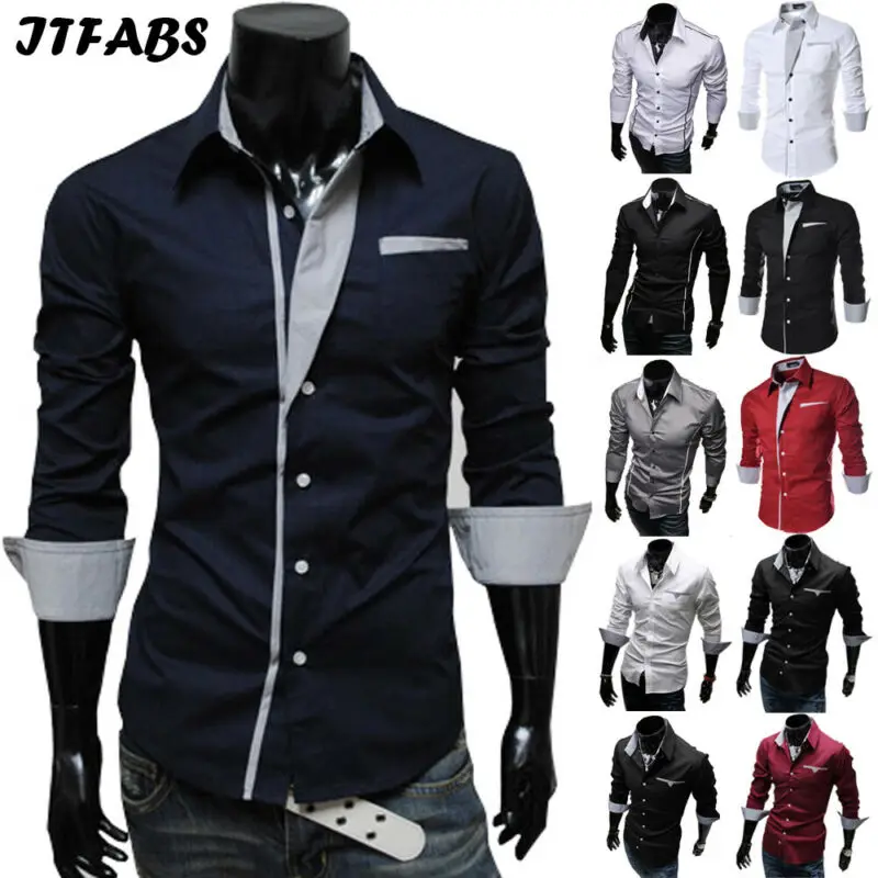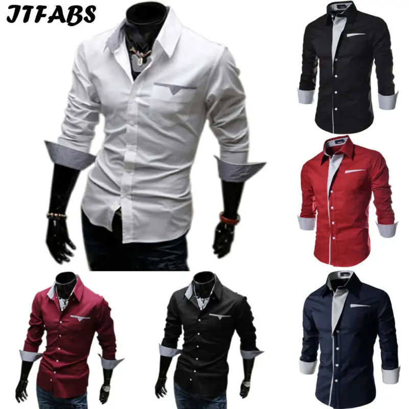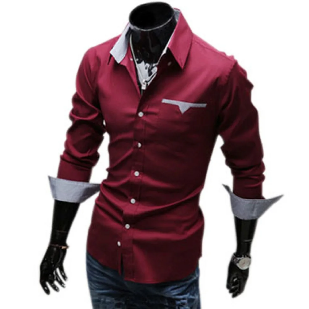 Рубашка мужская приталенная деловая с длинным рукавом, модная сорочка на пуговицах, повседневный однотонный топ, стильная формальная одежда
