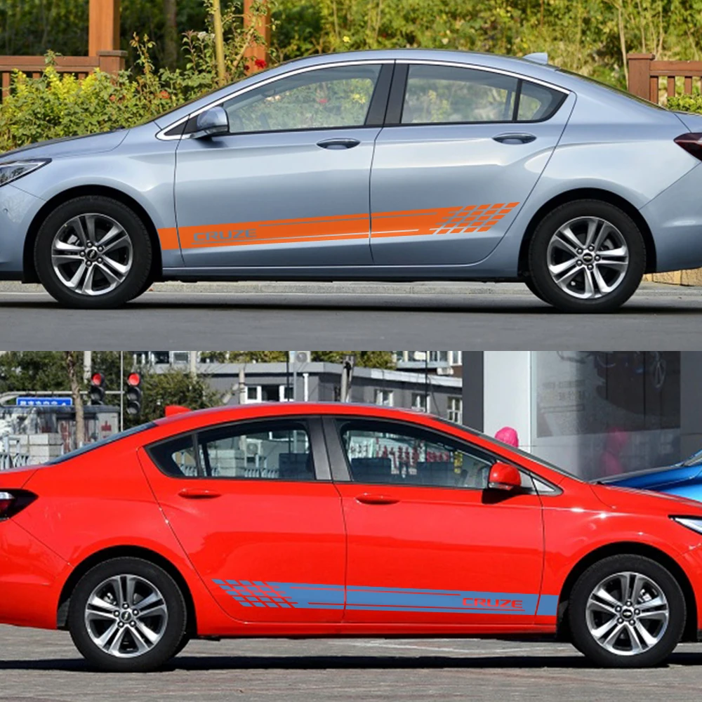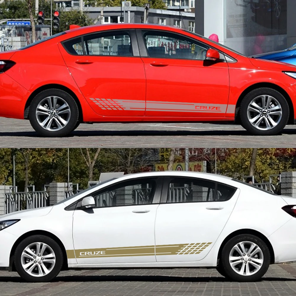 2 шт., наклейки для автомобиля, спорта, боковой двери, светоотражающие виниловые спортивные наклейки для автомобиля Chevrolet Cruze, автомобильные аксессуары