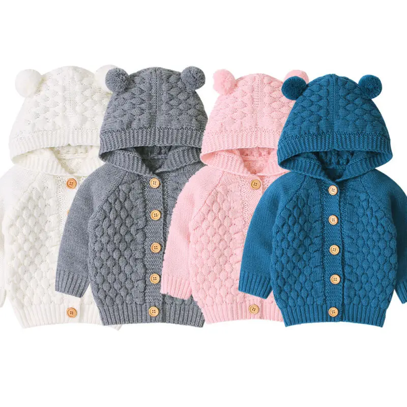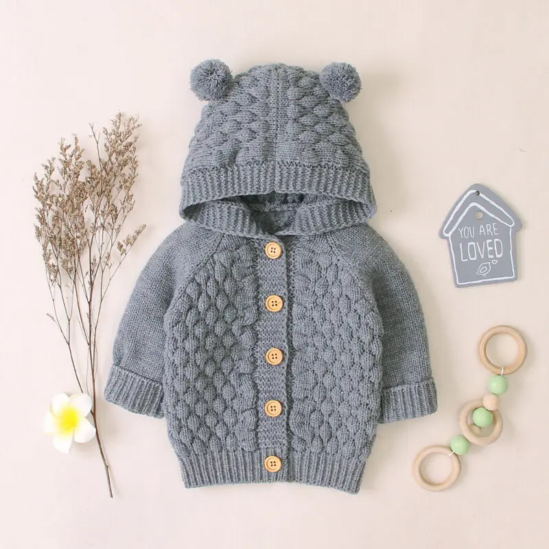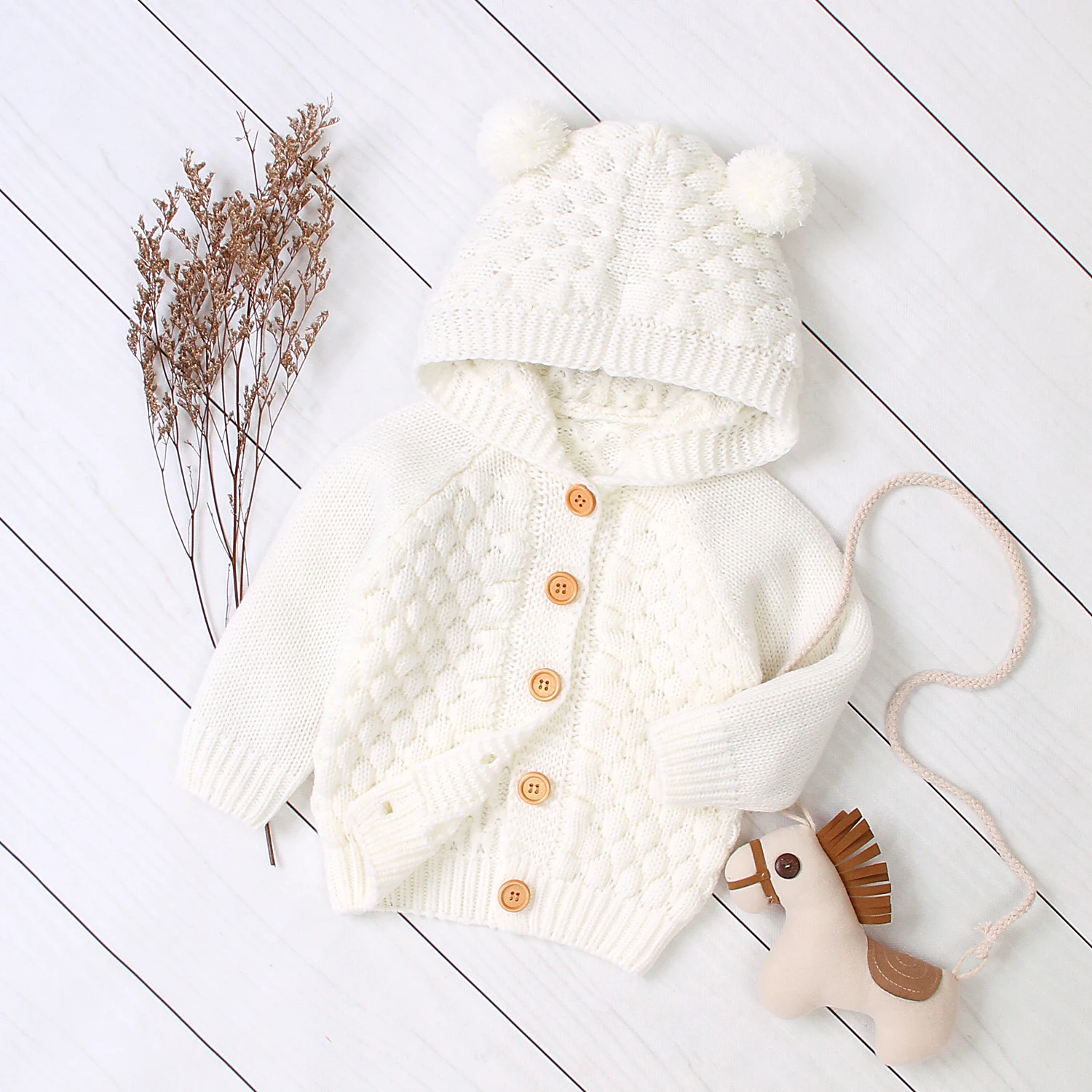 Новинка 2020, пальто для маленьких мальчиков и девочек, свитер, вязаная теплая куртка с капюшоном, Топы, верхняя одежда для малышей 0-24 мес.