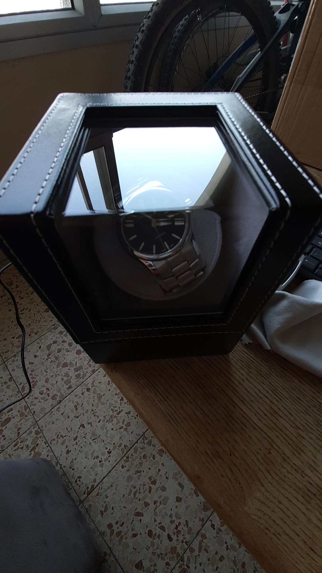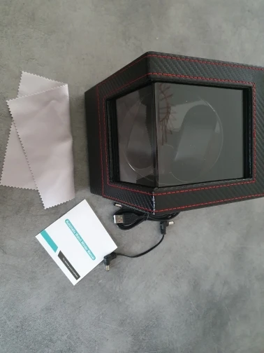 Приятный материал. Хорошо работает с usb-портом. Супер Тихий во время woking. Две мужские часы прекрасно подойдут. К сожалению, держатель слишком большой для женских часов. Прибыл через 3 недели после заказа.