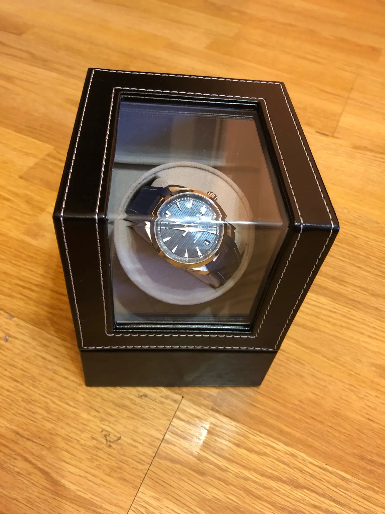 Очень красивая коробка, работает очень хорошо. Единственным недостатком является то, что большие толстые часы останавливают стекло крышки. Он будет работать, если крышка будет закрыта.