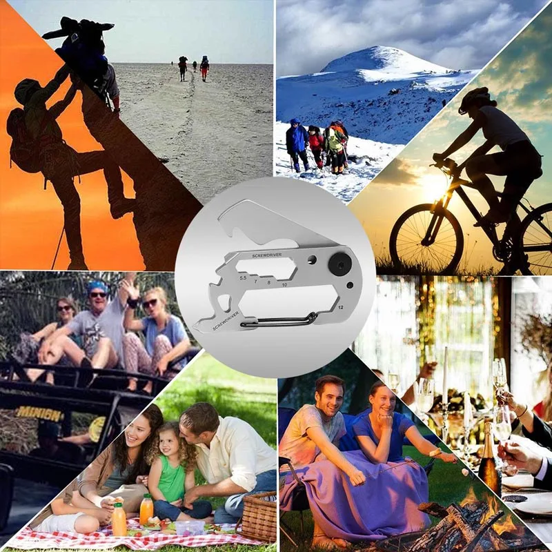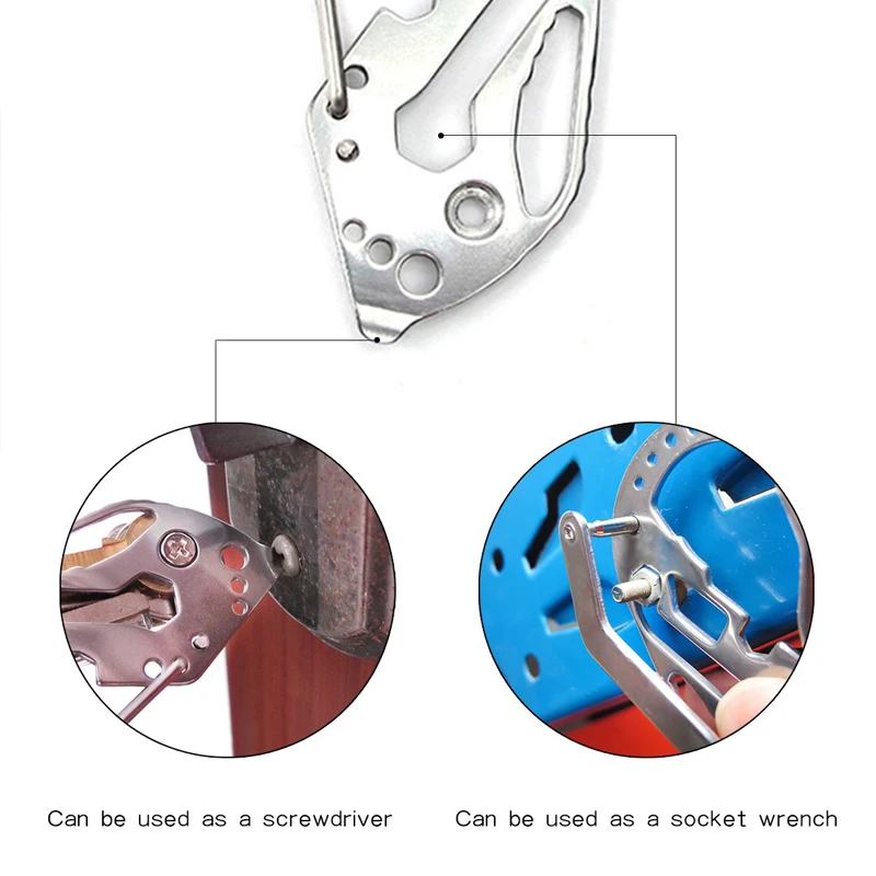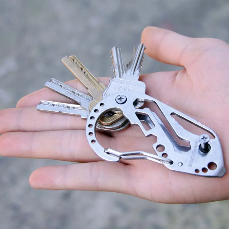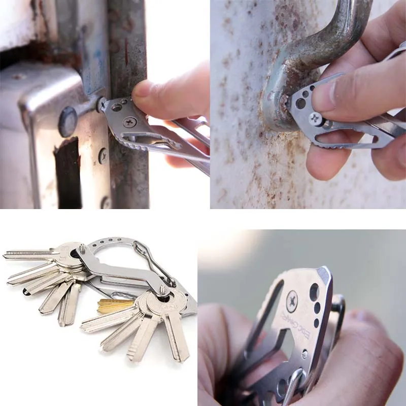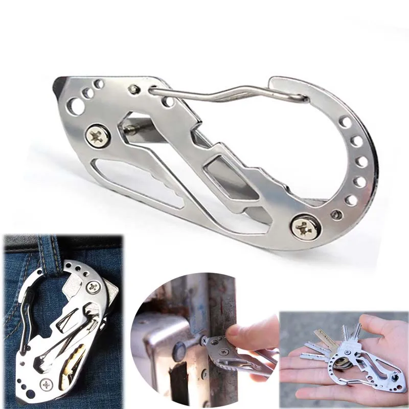 Многофункциональный брелок для ключей для выживания Открытый EDC тактический карманный инструмент из нержавеющей стали с карабином зажим для бутылок гаечный ключ винтовой инструмент