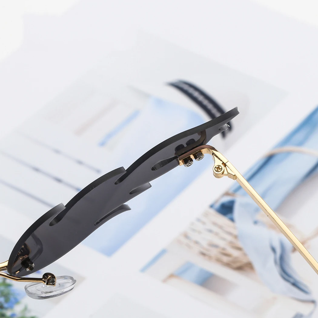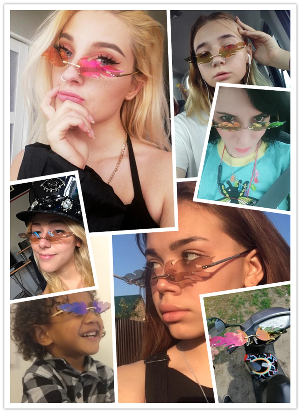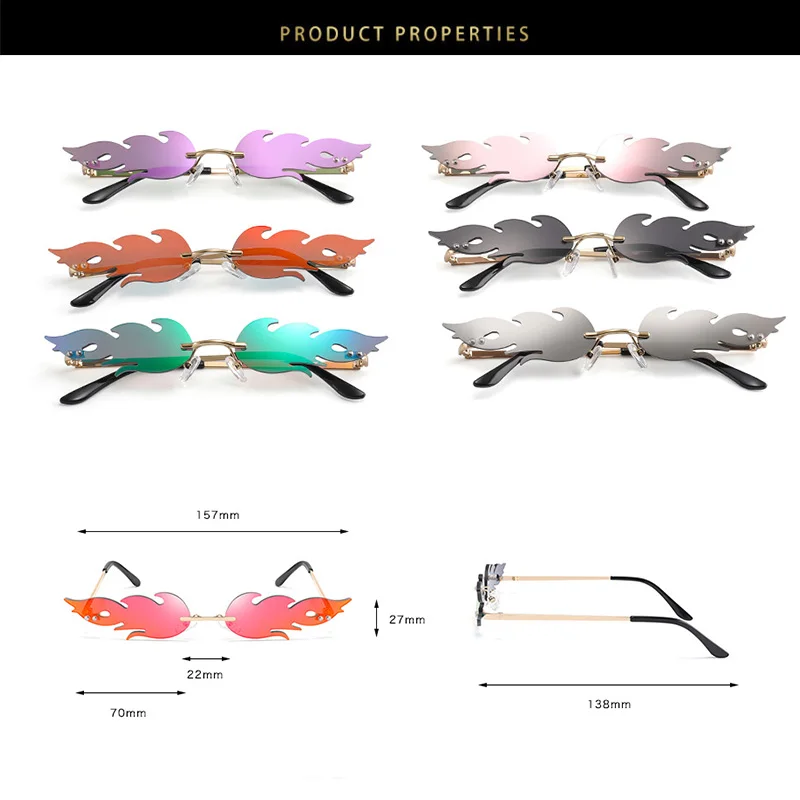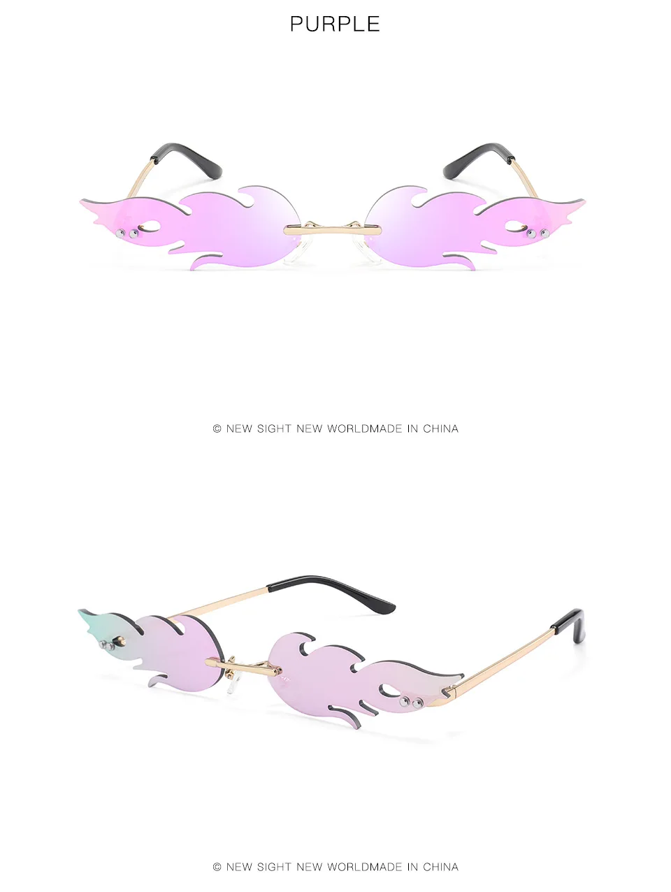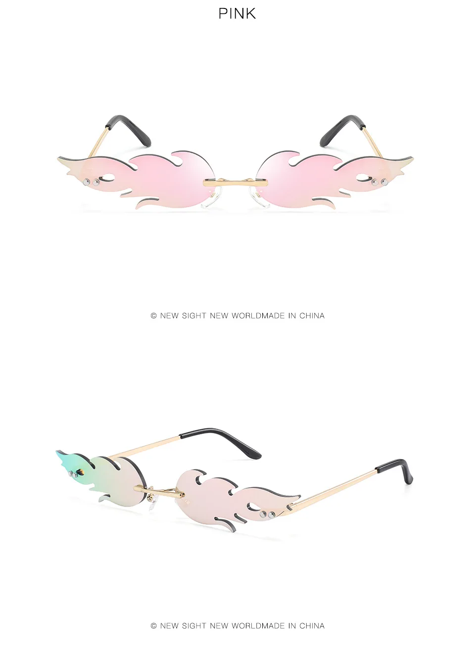 Винтажные Солнцезащитные очки LNFCXI в форме кошачьего глаза и огненного пламени для женщин и мужчин, солнцезащитные очки без оправы в форме волны, узкие розовые очки, уличная одежда