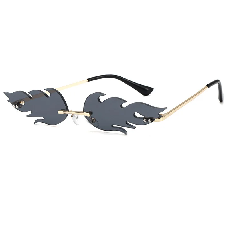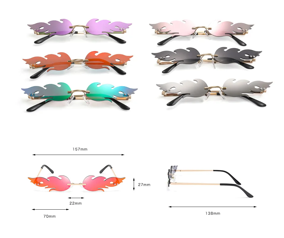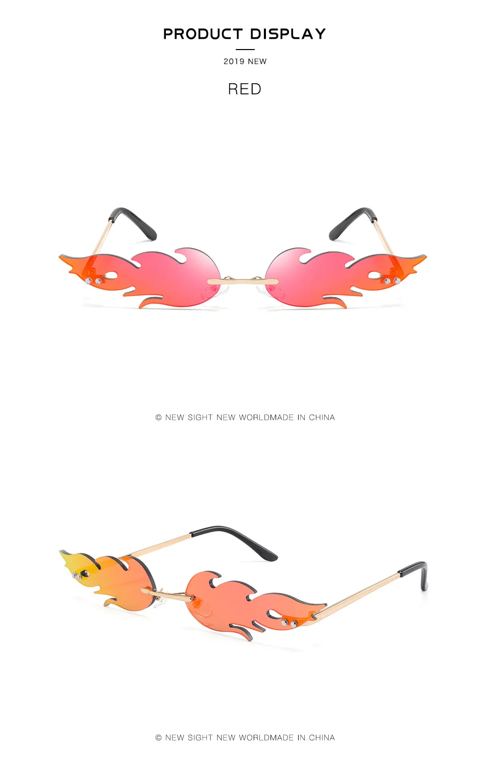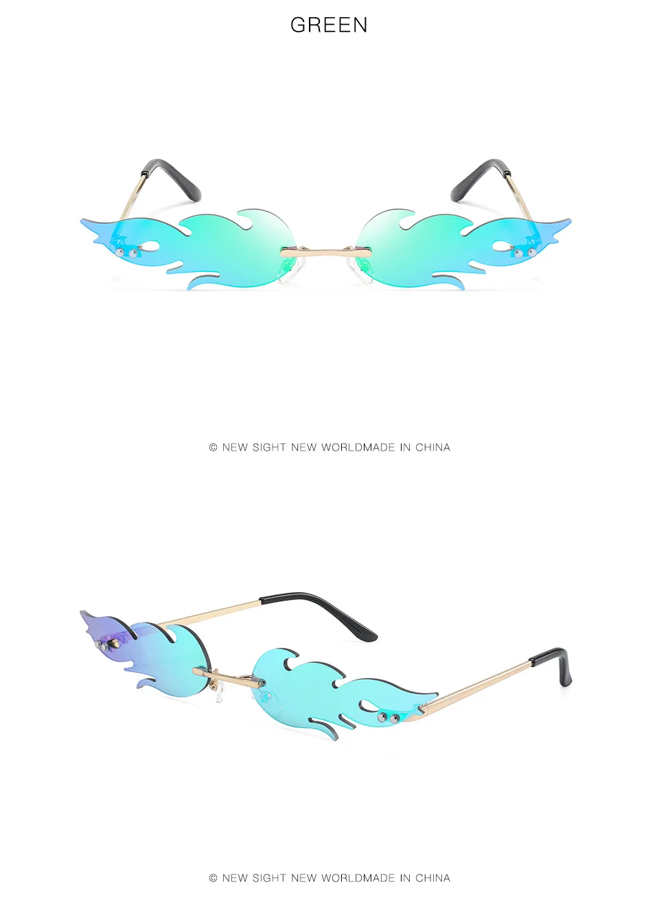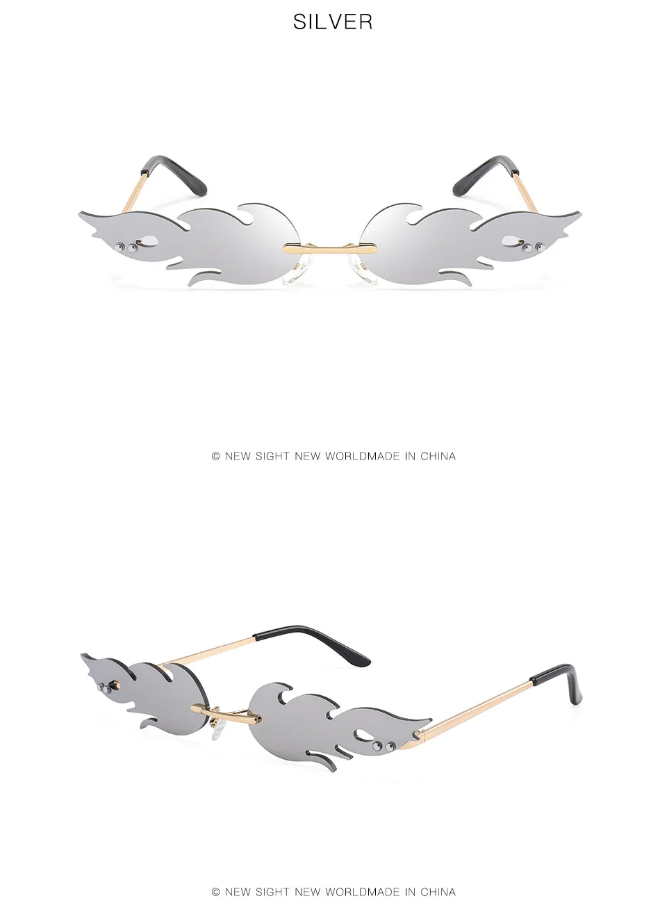 Винтажные Солнцезащитные очки LNFCXI в форме кошачьего глаза и огненного пламени для женщин и мужчин, солнцезащитные очки без оправы в форме волны, узкие розовые очки, уличная одежда