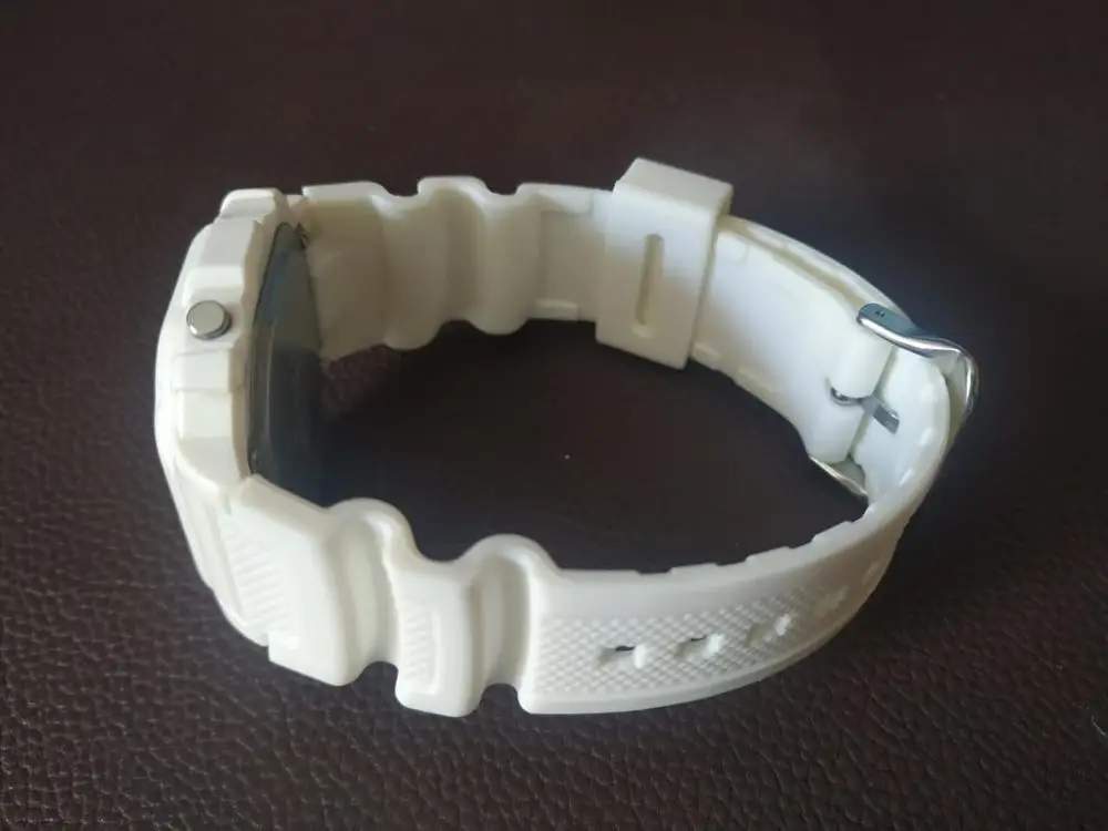 Всё как на фото. Учтите, белый ремешок очень быстро пачкается.