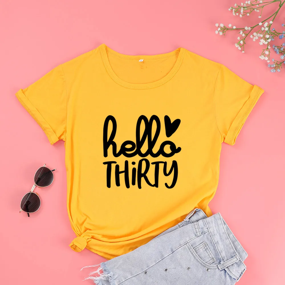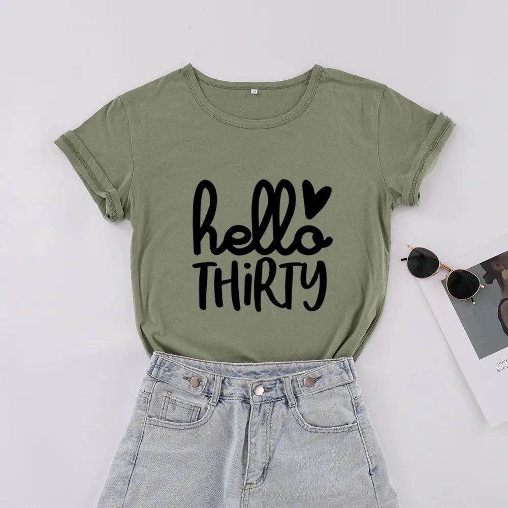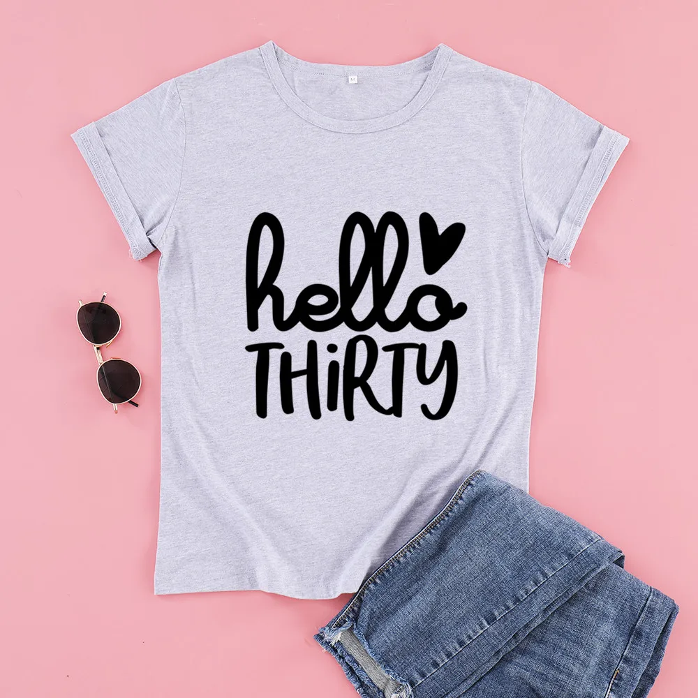 Hello Thirty 30 лет, подарок на день рождения, Футболка Harajuku, модные графические женские хлопковые рубашки размера плюс, футболки с коротким рукавом и круглым вырезом