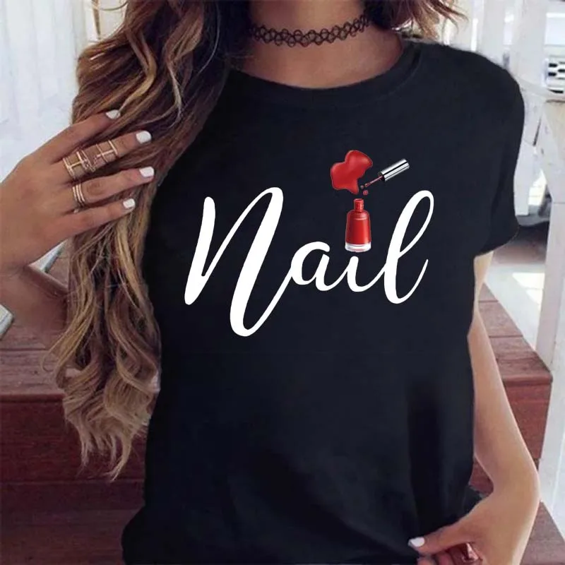 Женская футболка с графическим 3D принтом для ногтей, цветная модна...