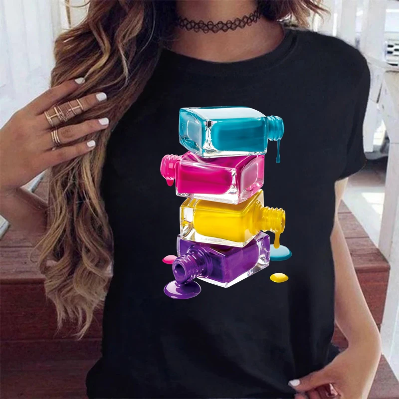 Новая женская футболка Maycaur с 3D принтом цветного лака для ногтей, летняя футболка, женские топы Tumblr, футболка, повседневная женская одежда, топы
