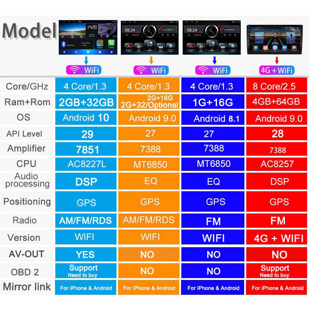 . ОС: чистая Операционная система AndroidRAM + ROM:1G + 16G 2G + 16G 2G + 32G 4G + 64GПоскольку система занимает внутреннюю память, операционная система занимает около 4-6 ГБ памяти.Бесплатная карта установкиЦП: четырехъядерныйПоддержка изменения логотипа, пароля заводского набора: 8888, изменение логотипаРазъем питания: подключи и работайВстроенный GPS-Поддержка 2D HD и 3D картОпределение: емкостный экран 2.5D HD 1024*600 пикселей--- Поддержка внешнего мобильного U-диска и жесткого диска формата FAT32 (без ограничения емкости)--- Интернет-развлечения, Встроенный Wi-Fi модуль.--- Поддержка видеоигр HD 1080p, зеркальной связи и Airplay.--- Радио: FM / AM-радио с 30 предопределенными станциямиФункция двойной зоны (пользователь может слушать музыку или радио в режиме GPS-навигации)--- Встроенная гарнитура Bluetooth и телефонная книга, поддержка A2DP, воспроизведение музыки напрямую с телефона. (Вам необходимо согласиться на разрешение телефона и синхронизировать контактную информацию в настройках телефона)Совместимость с управлением рулевым колесомЭлектронная и механическая Противоударная система--- Мощный стерео аудиовыход, поддерживает 4 динамика---- Поддержка входа для камеры заднего вида AHD 1080PОбратите внимание: эта статья не имеет функции DVD / CD, но она поддерживает жесткий диск, мобильный USB / U диск.