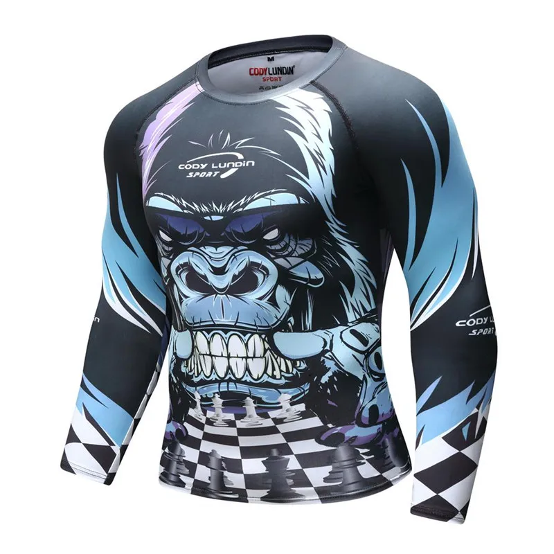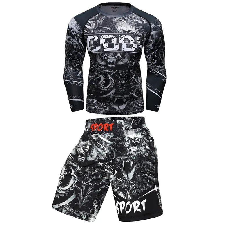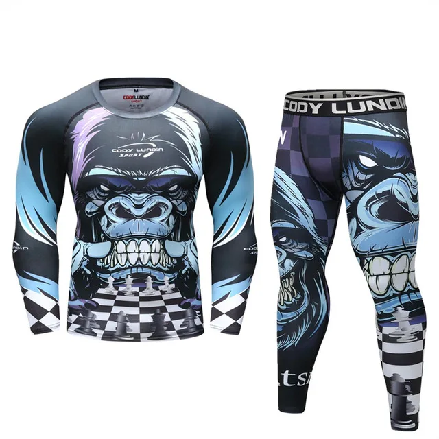 Новый мужской спортивный костюм, футболка и брюки, 3D принт, обтягивающий, компрессионный, для тренажерного зала, MMA Rashguard, топ Bjj, комплект для фитнеса
