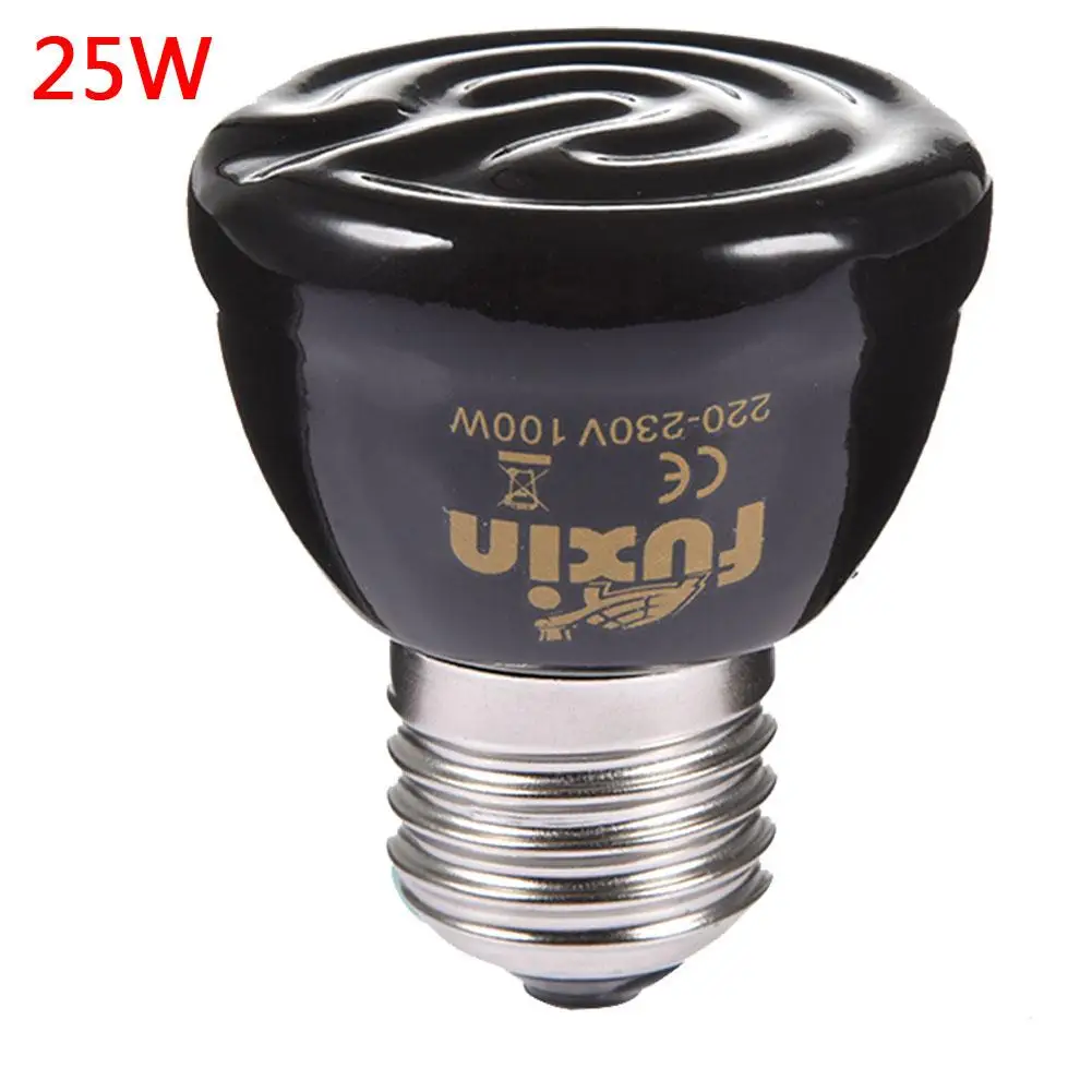 Нагревательная лампа для домашних животных, 25 Вт, 50 Вт, 75 Вт, 100 Вт, E27, Черный Инфракрасный Керамический Излучатель, тепловая лампа, лампа для рептилий, 220-230 В