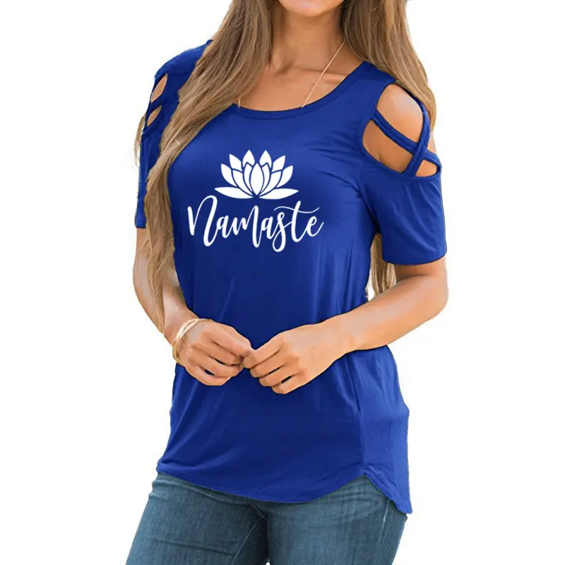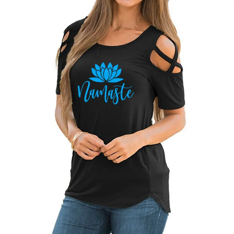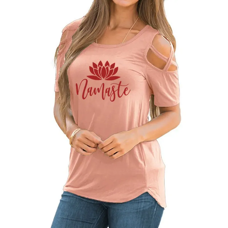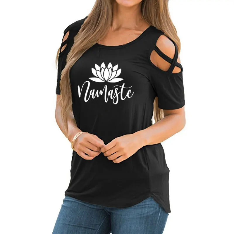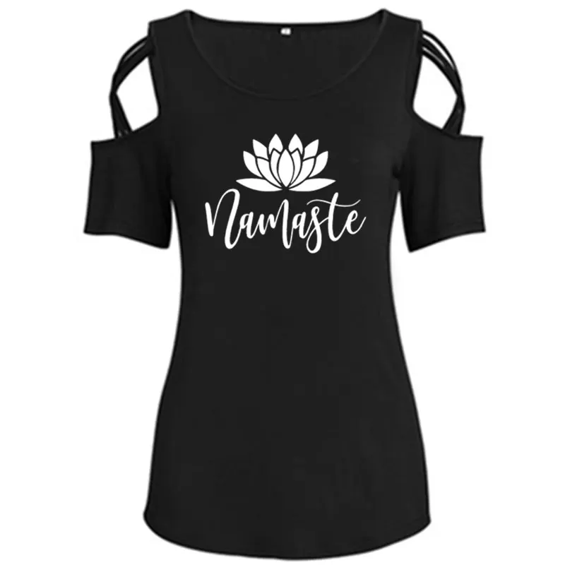 Женская Винтажная футболка с открытыми плечами Namaste, рубашка с цветочным принтом и надписью, подарок для любимой девушки из вегана