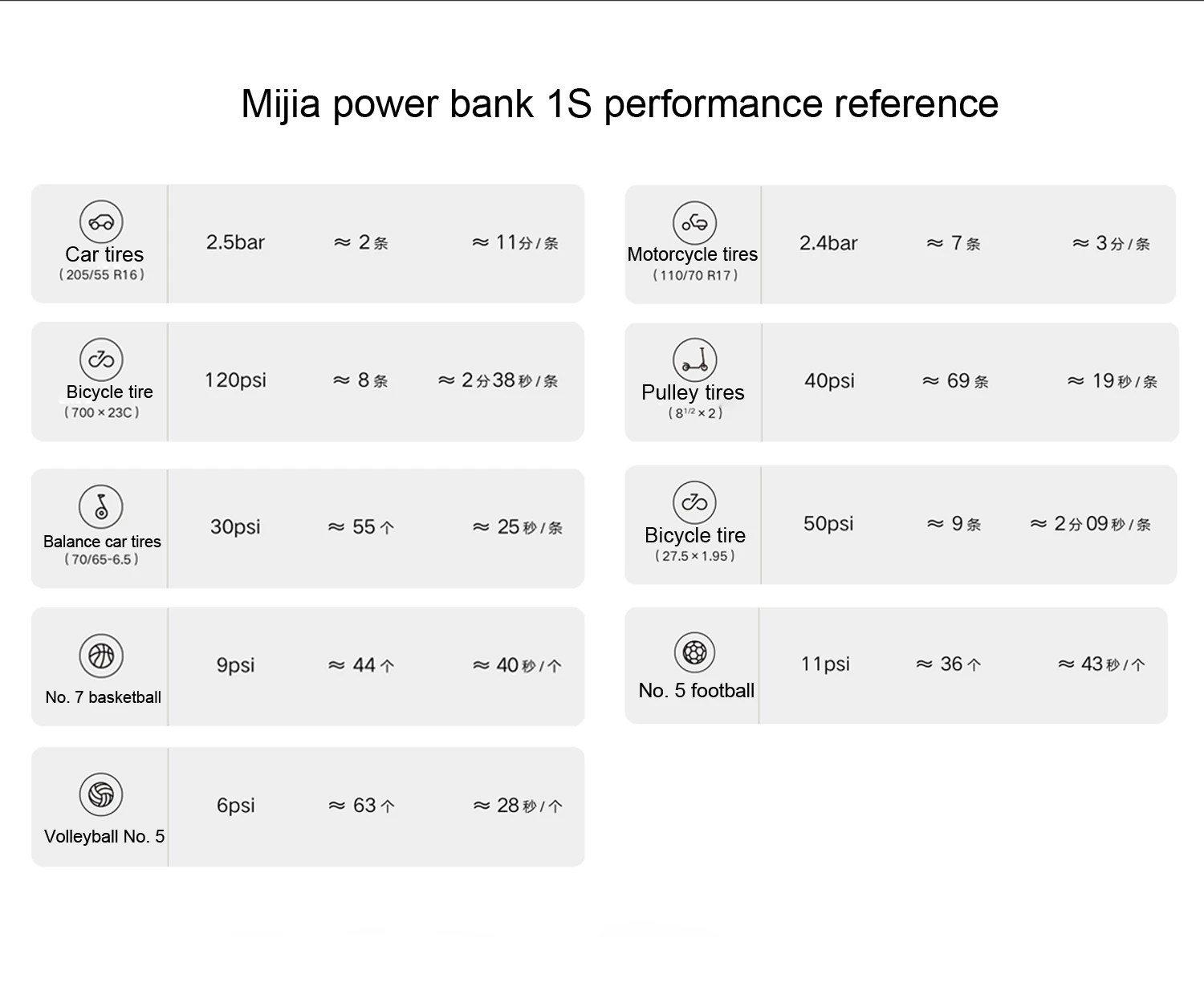 * Название продукта: надувной насос Xiaomi Mijia 1S 2021* Режим: MJCQB04QJ* Размер: 124*71*45,3 (без трахеи)* Диапазон давления: 0,2-бар/3-фунта на кв. дюйм* Рабочая температура: -10 ℃ ~ 45 ℃* Емкость аккумулятора: 2000 мАч* Шум при работе: 80 дБ (на расстоянии 1 метра)* Вход: 5 В/2 А* Время зарядки: 3 часа