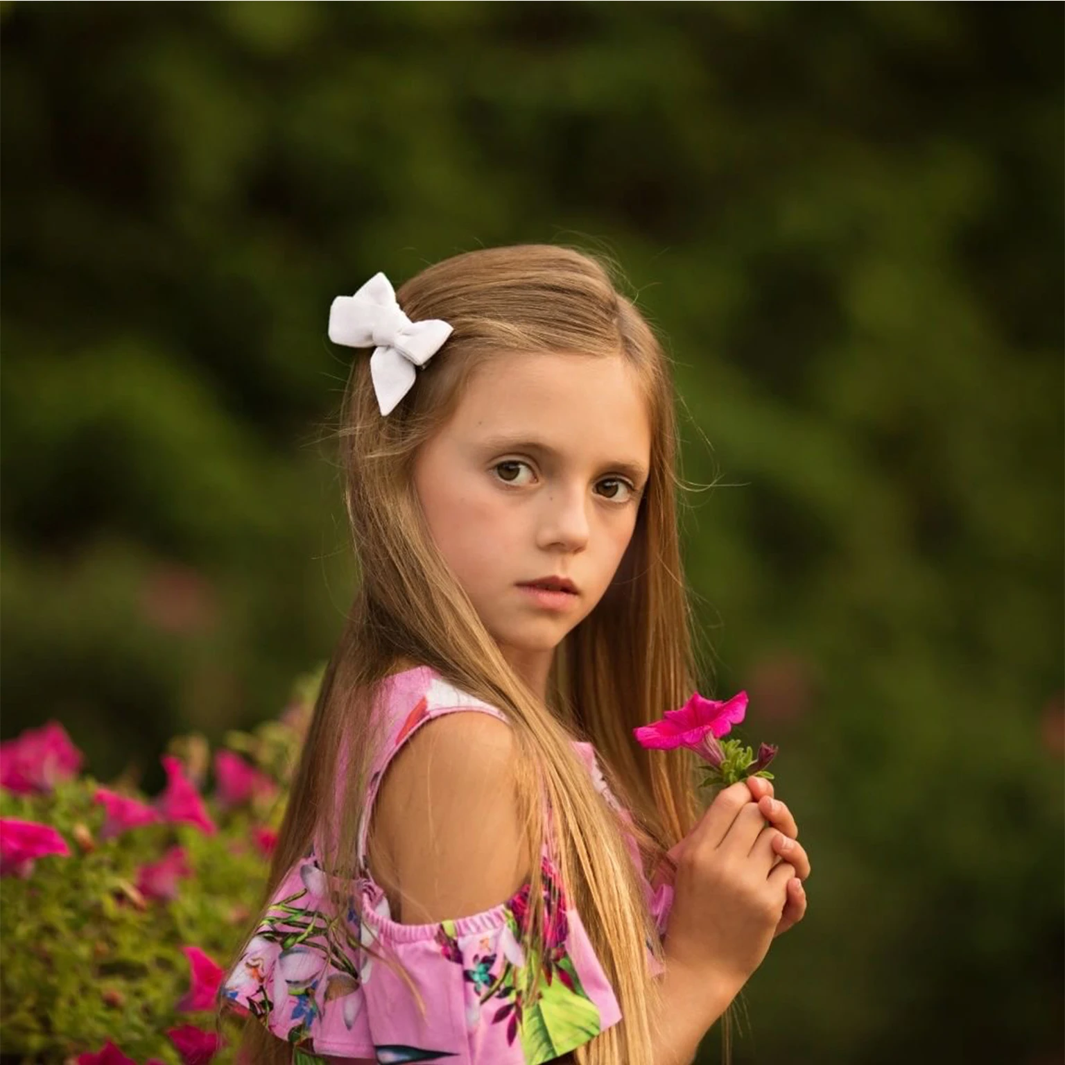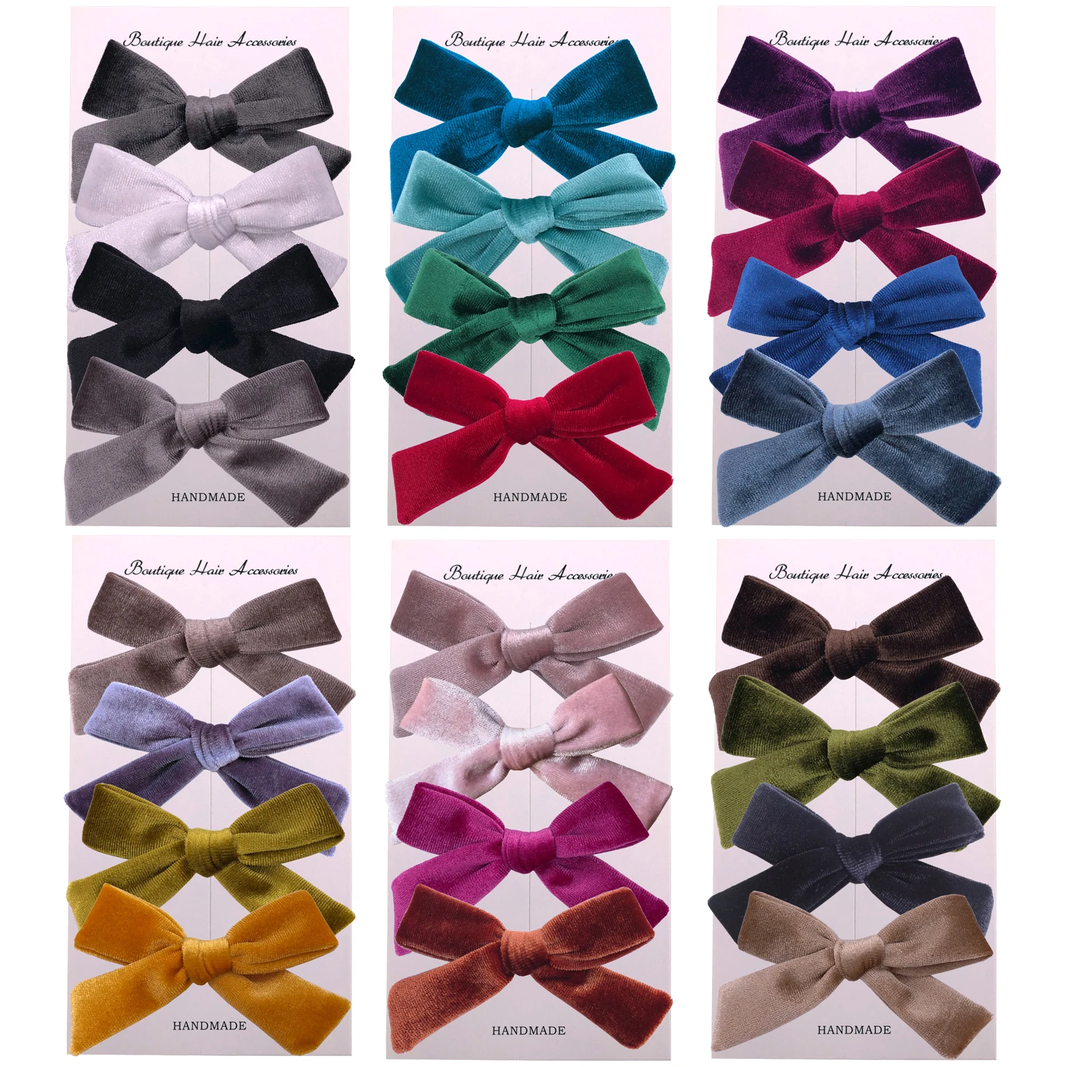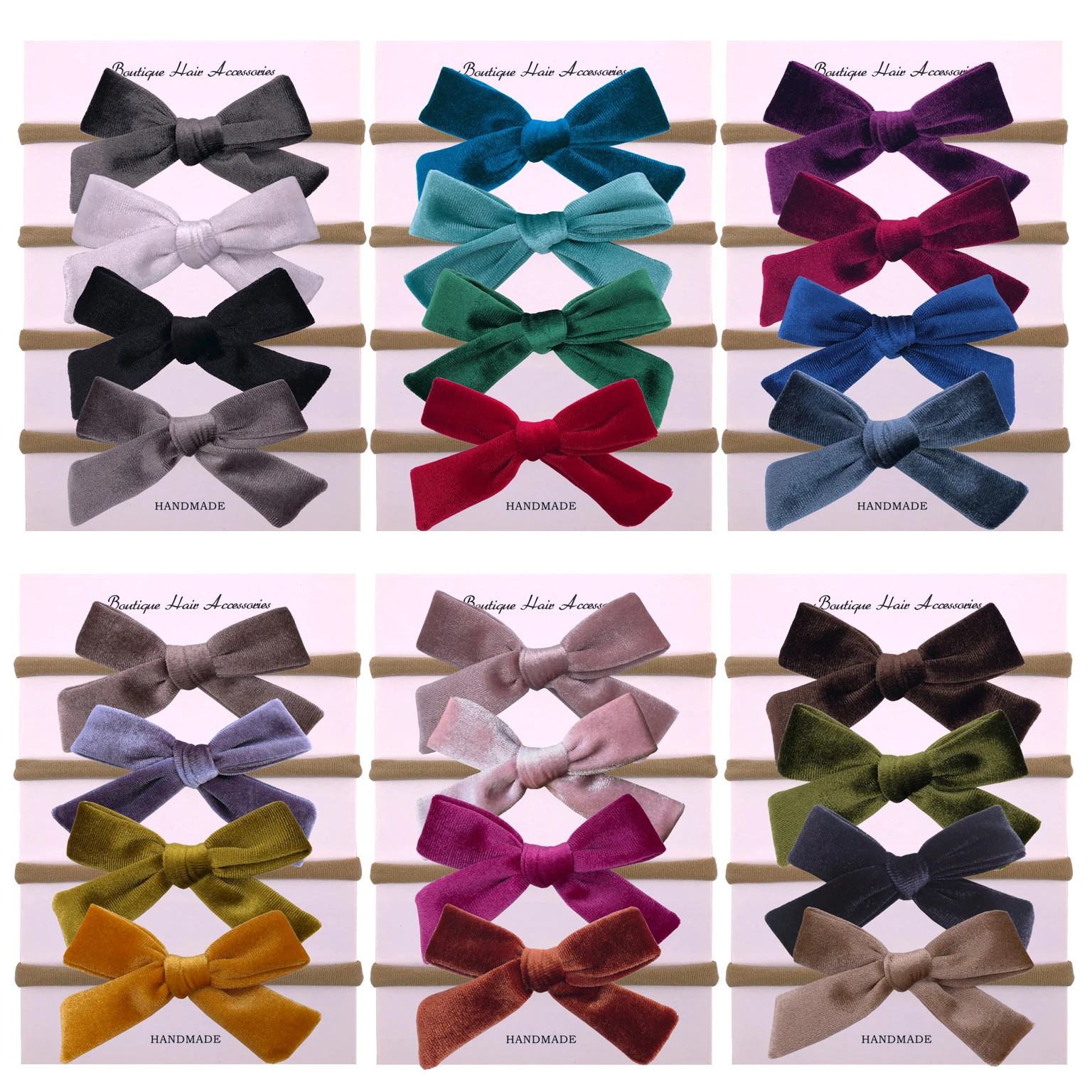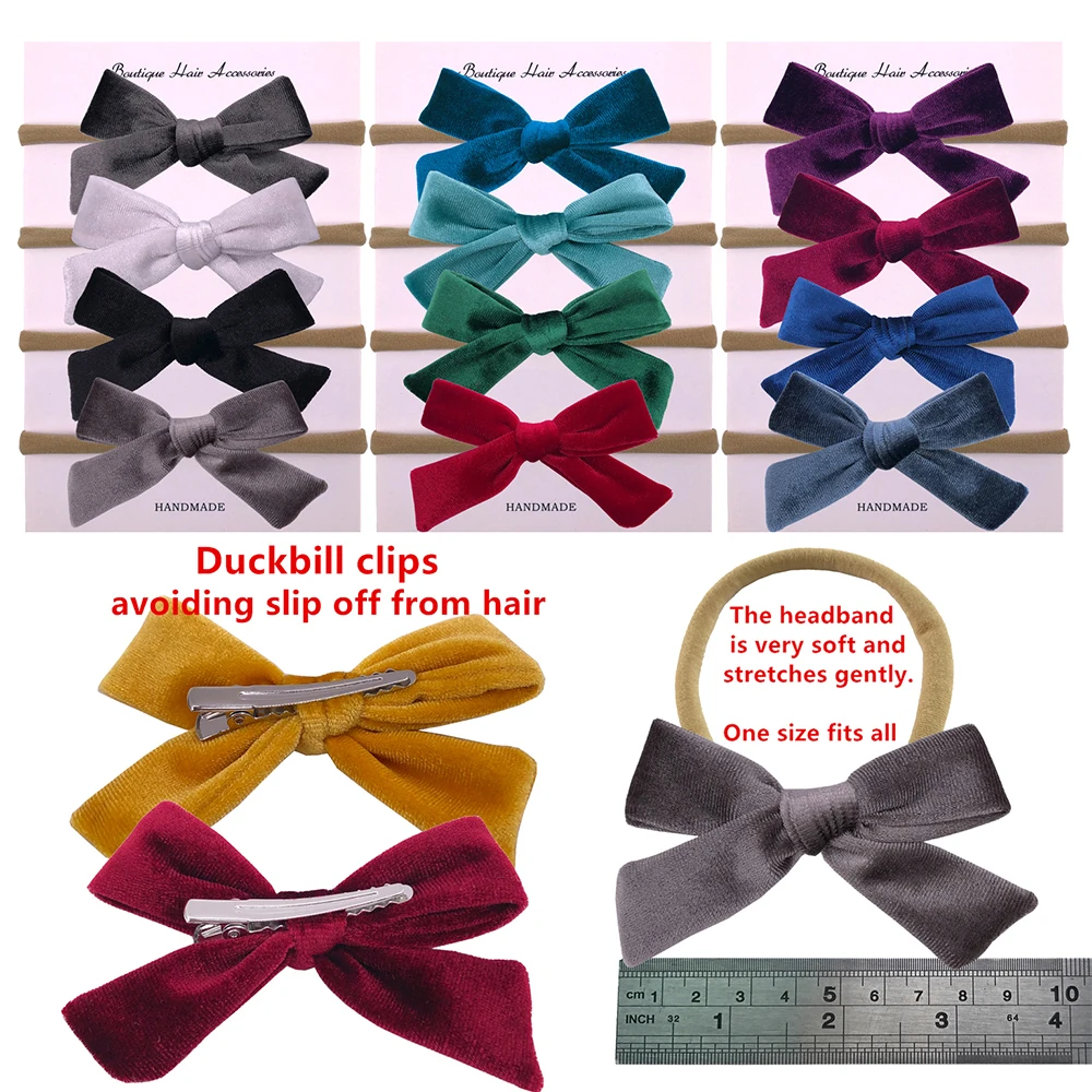 Комплект из 4 предметов для детей ясельного возраста детская одежда для девочек бархатный бант для волос заколки из мягкого нейлона и шифона со вставками в полоску, повязка на голову милое бархатной ткани ободок с бантиком аксессуары