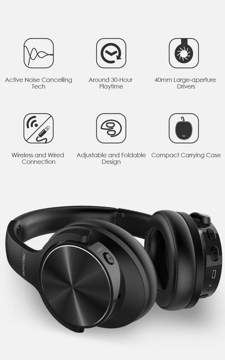Беспроводные наушники Mixcder E9, активное шумоподавление, Bluetooth-гарнитура с Hi-Fi насыщенными басами, 3d-стерео аудиоразъем