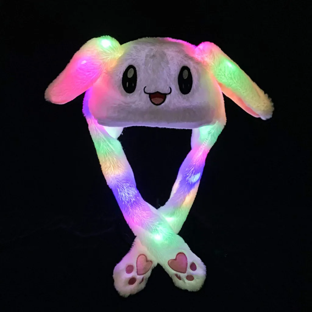 Шапка с подвижными ушками кролика, плюшевая шапка с подсветкой, под...