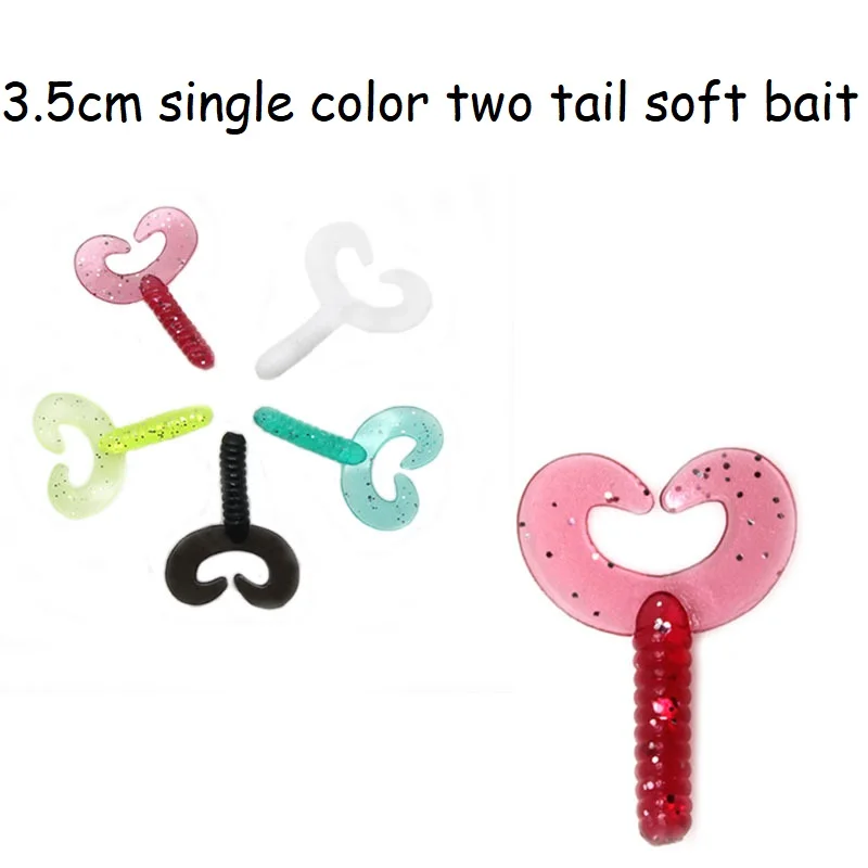 Мягкая одноцветная рыболовная приманка с двойным хвостом, 50 шт.лот, 3,5 см0,8 г, силикагель, два хвоста, личинки, червь, воблеры, свимбейт, силиконовые приманки