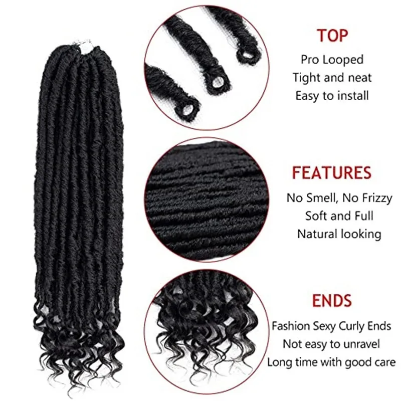 Синтетические прямые богини Locs вязаные косы для предварительно заплетенных искусственных локонов с кудрявыми концами волосы 16 "20" дреды плетеные волосы