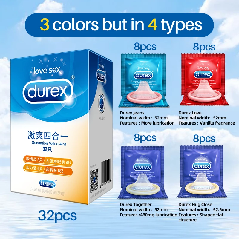 Durex Sensation Value 4в1:Внутри мешок с синим цветом любовь тип: 8 шт./кор. внутри мешок с красным цветом джинсы Тип: 8 шт./кор. внутри мешок с синим цветом Hug закрытого типа: 8 шт./кор. внутри мешок с синим цветом