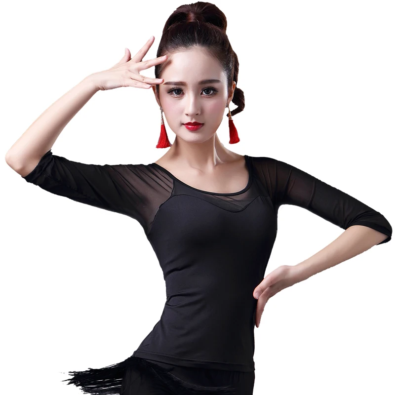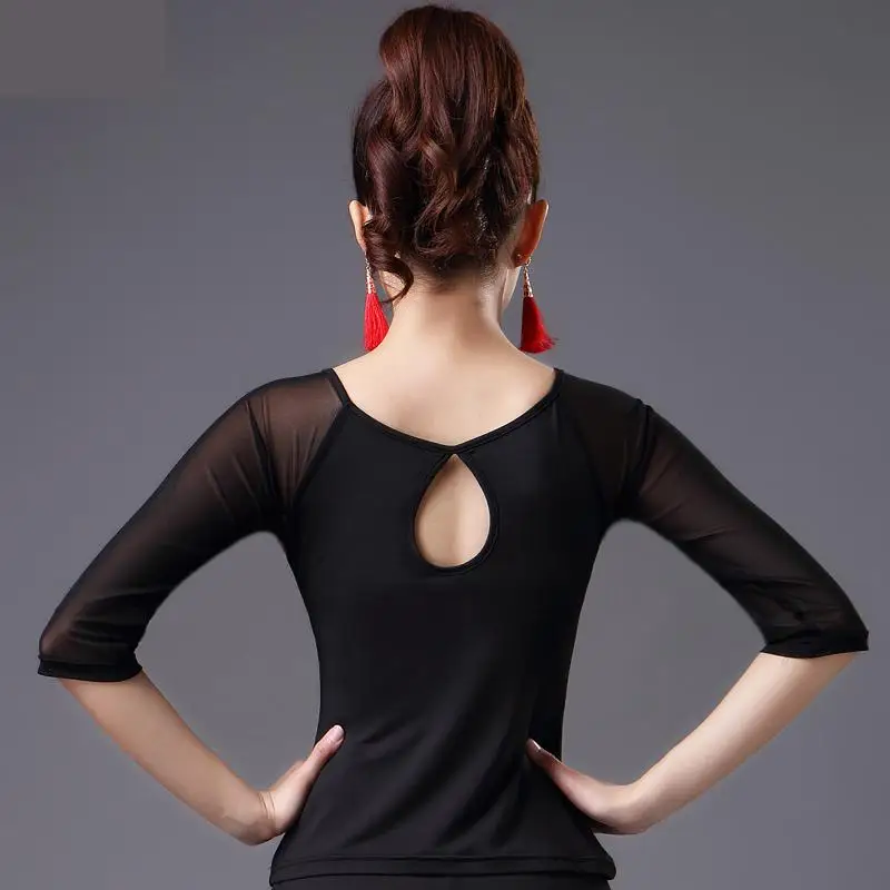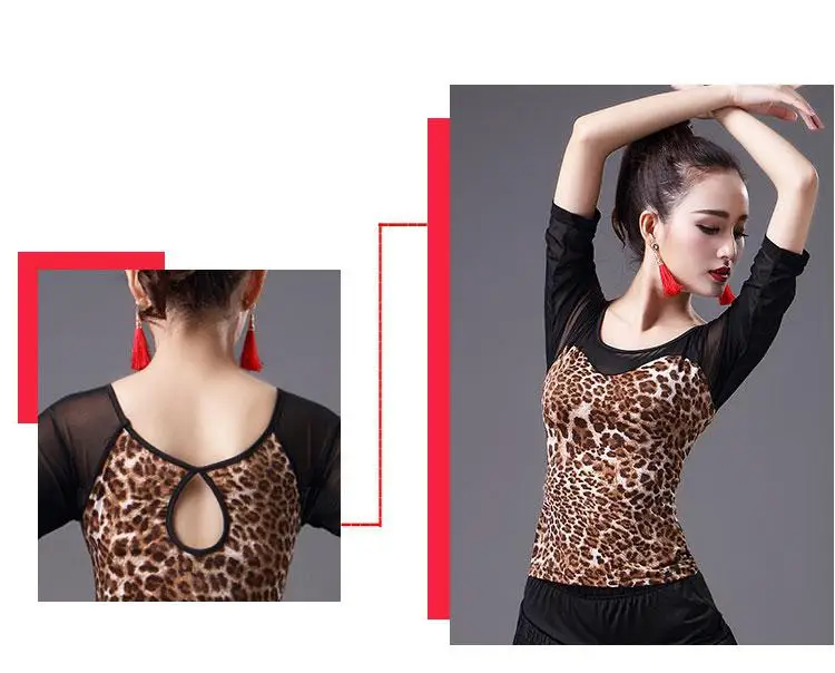 Топ женский для латиноамериканских танцев, с полурукавами и леопардовым принтом