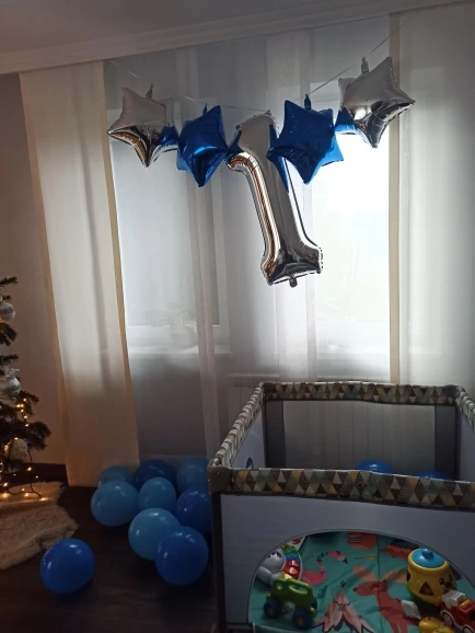 Получила шарики. Пока не попробовал надуть синие шарики, думала, что продавец ошибся с цветом и положил не те шары)) Пока ещё не надували, но когда надуем, будут классно смотреться.