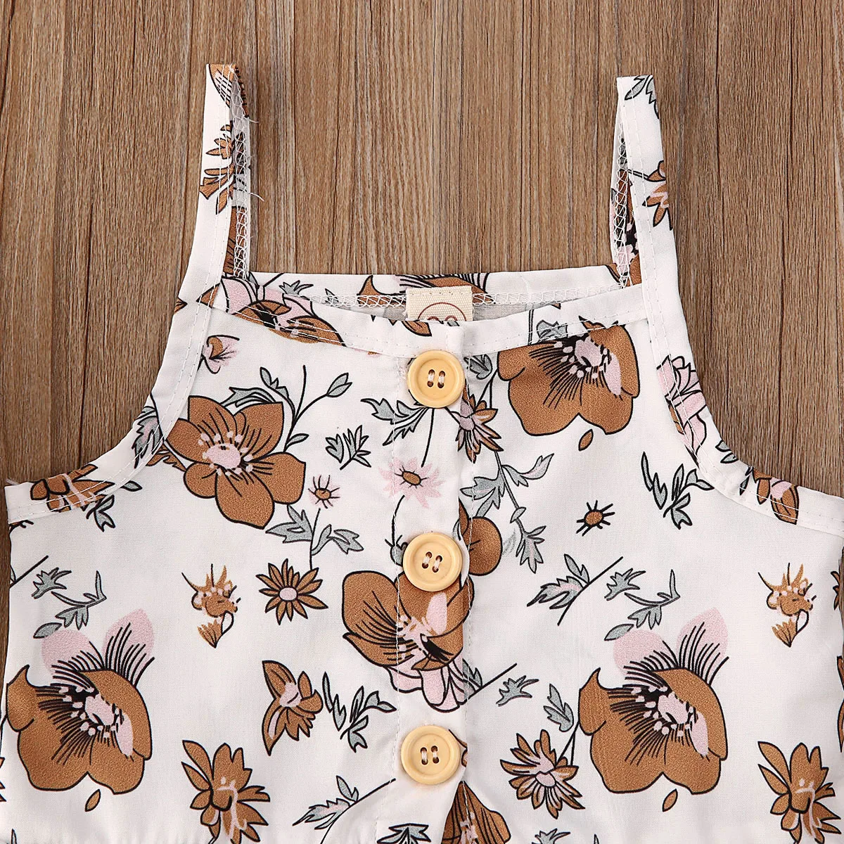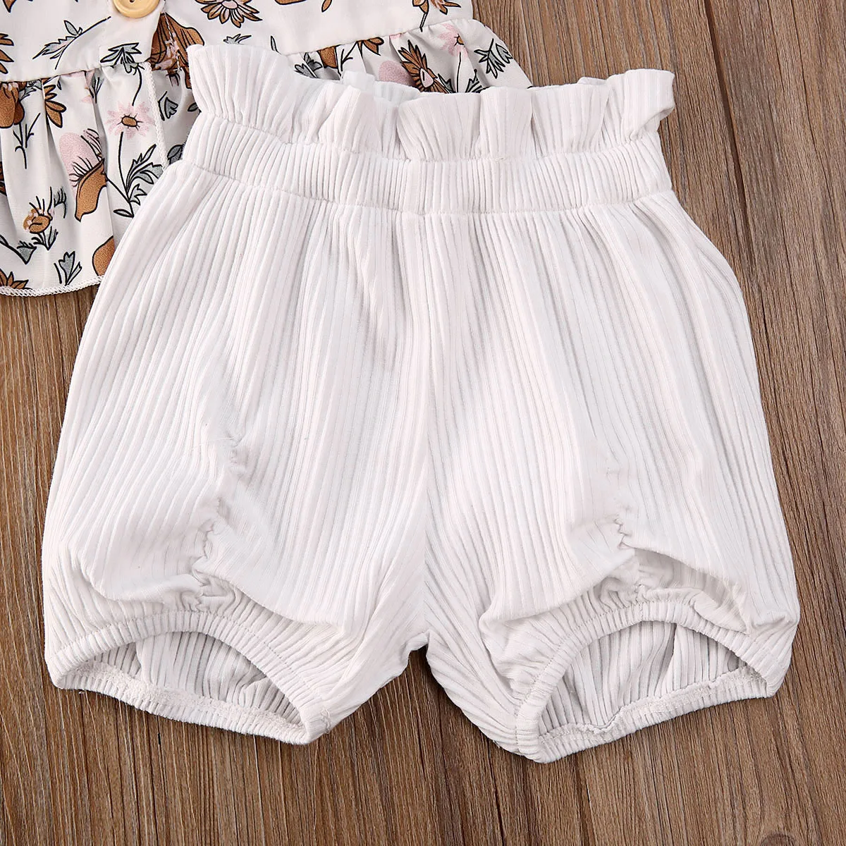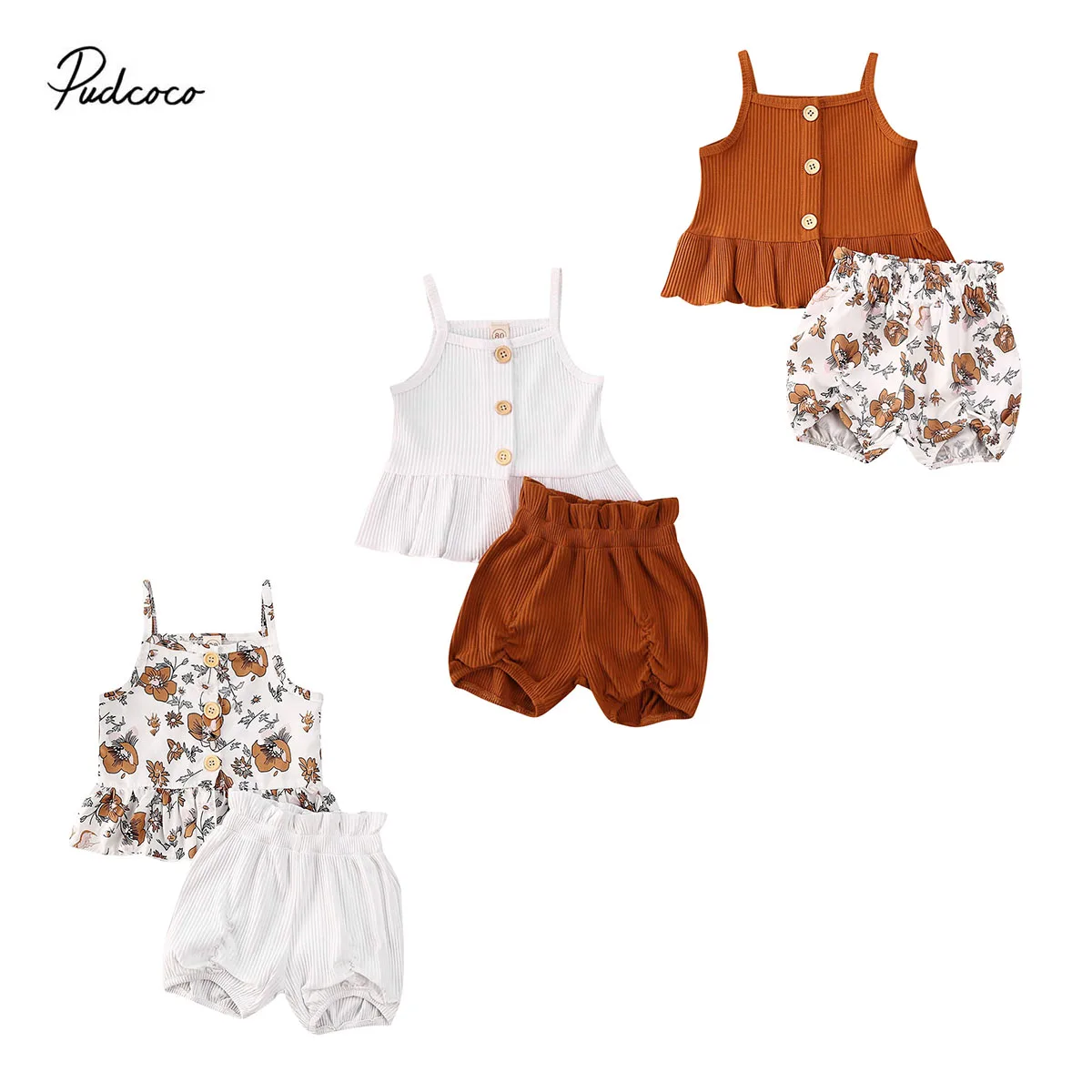 2020 летние каникулы 12M-5Y детская трикотажная одежда, Однотонная футболка на пуговицах, для девочек, платье-майка топ + цветочные шорты-шаровары одежда для малышей Одежда для детей в стиле Бохо комплект из 2 предметов