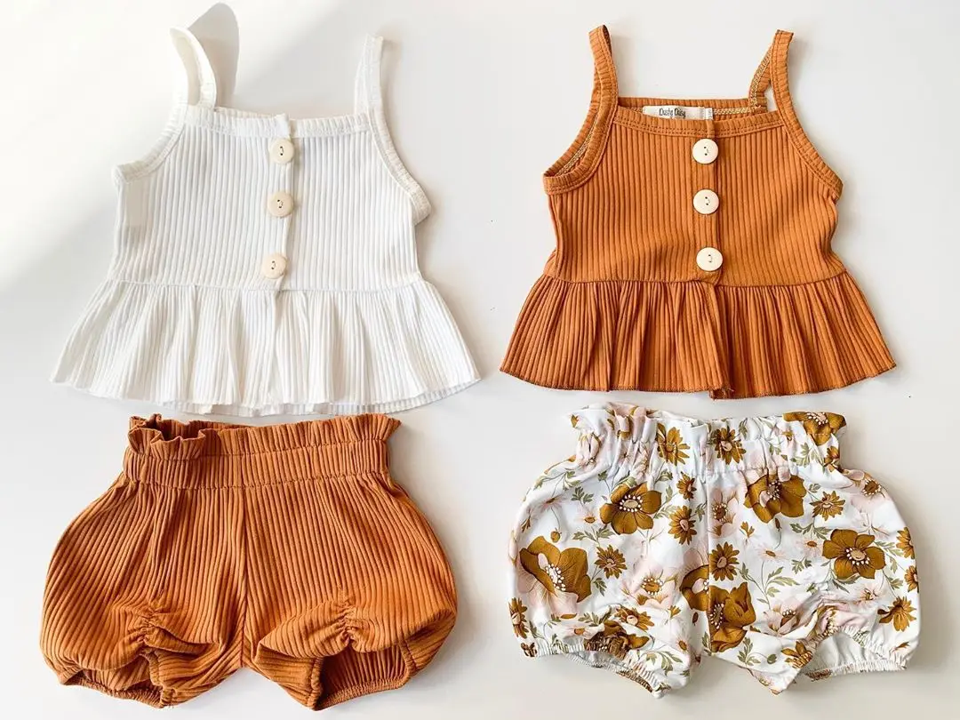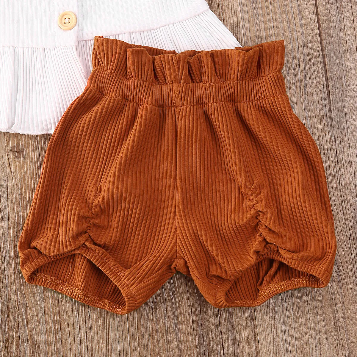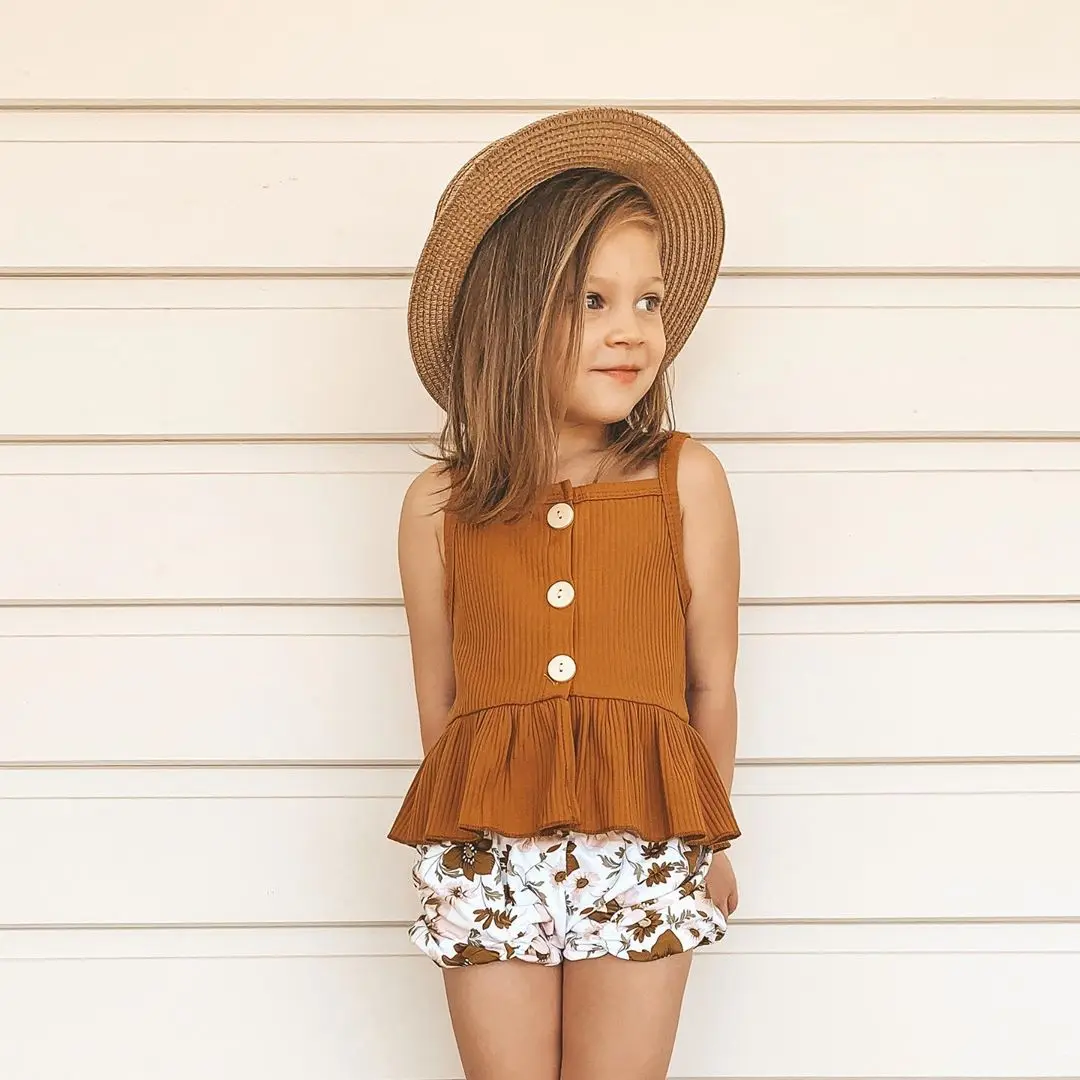 2020 летние каникулы 12M-5Y детская трикотажная одежда, Однотонная футболка на пуговицах, для девочек, платье-майка топ + цветочные шорты-шаровары одежда для малышей Одежда для детей в стиле Бохо комплект из 2 предметов