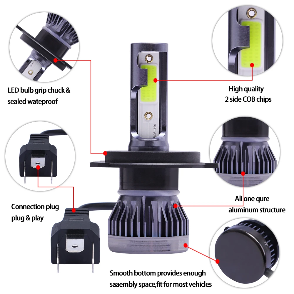 Страна: RU Emitting Color: 6000K Cold White Socket Type: H4/9003/HB2 Hi/Lo Lumens: 12000Lm Доставка: Standard Shipping 19.10.2020