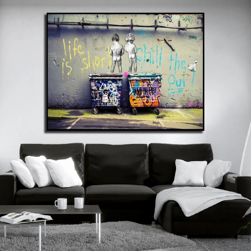 Граффити Бэнкси-стрит Жизнь короткая, охлаждение утки, плакаты и пе...