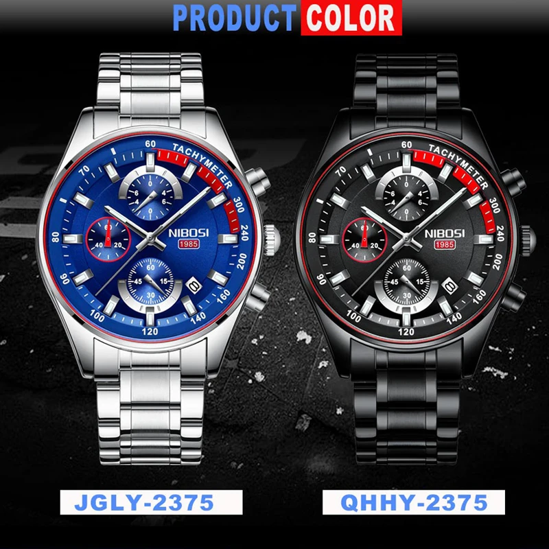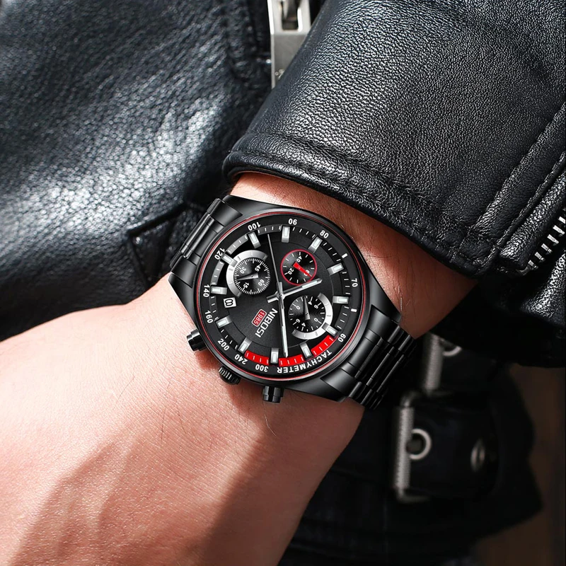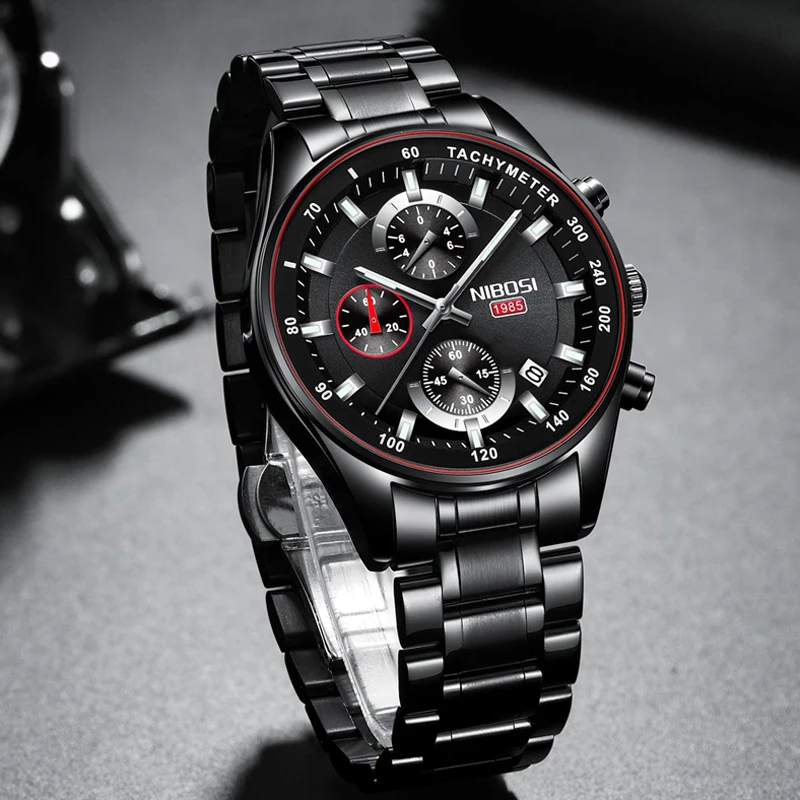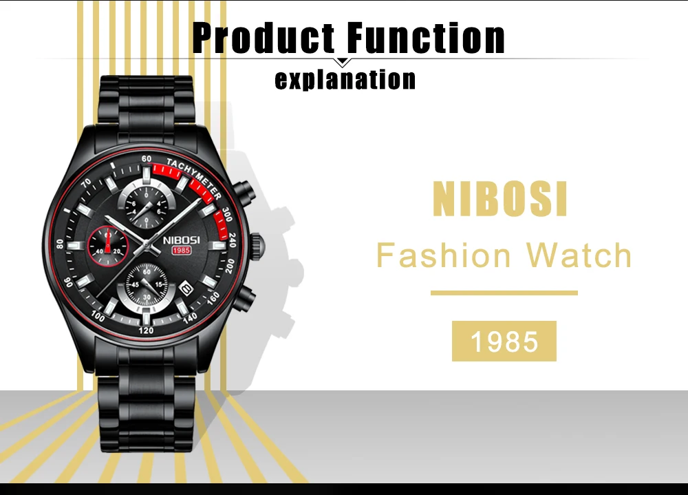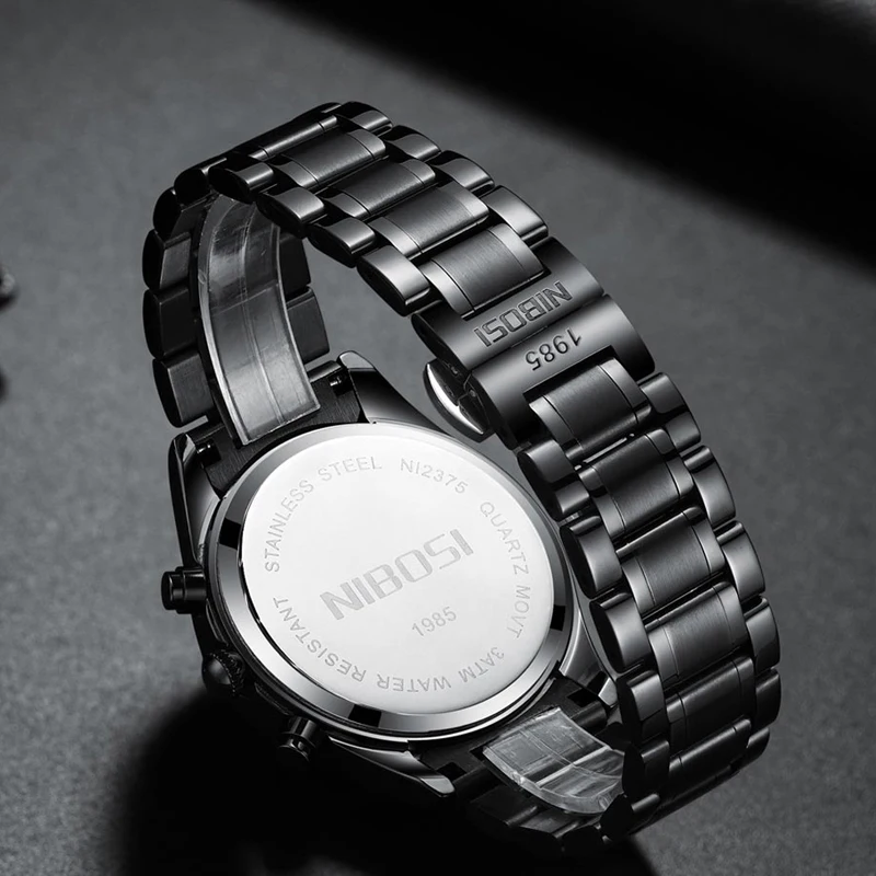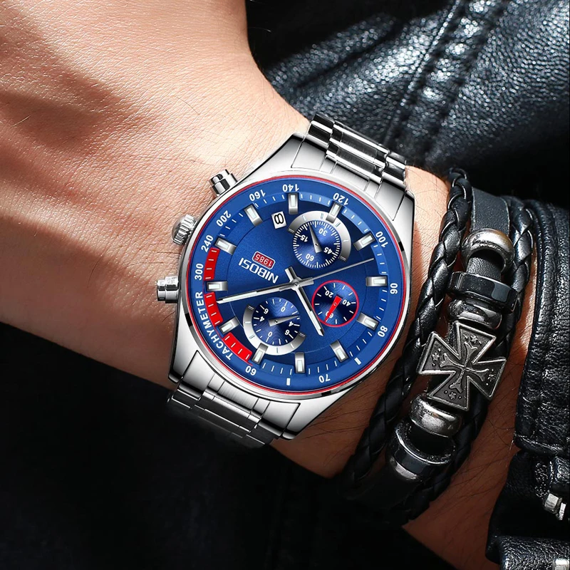 Часы наручные NIBOSI Мужские кварцевые, модные брендовые золотистые модные в стиле милитари, с хронографом, из нержавеющей стали