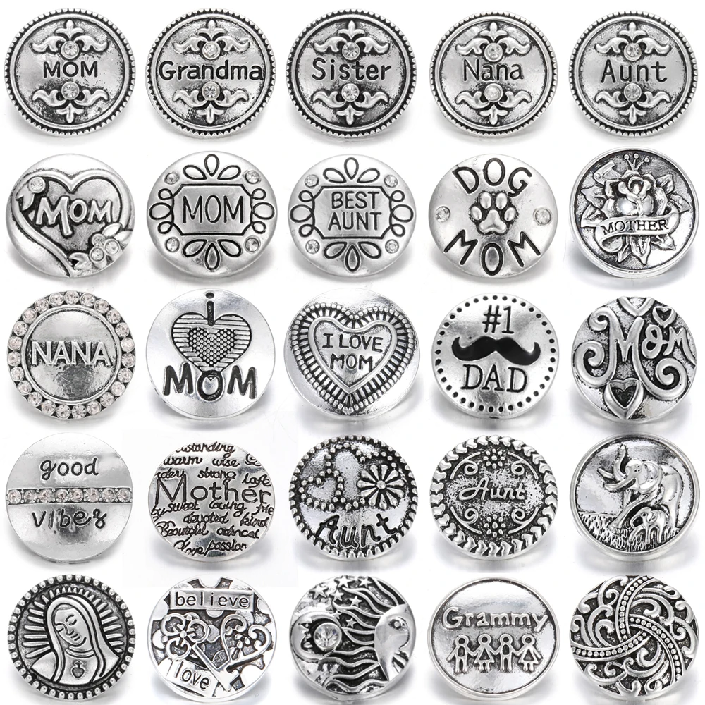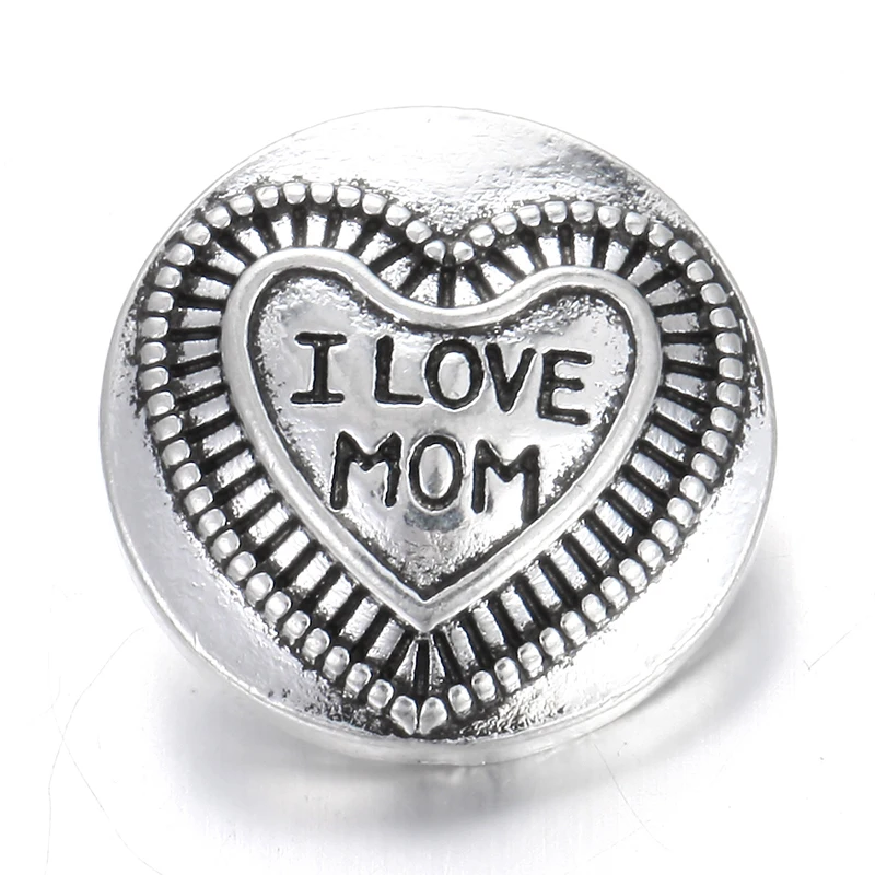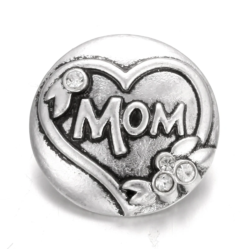6 шт.лот, 18 мм, кнопки со стразами и кристаллом Мама Любовь, кнопки, ювелирные изделия, браслет с кнопками для Счастливого Дня матери