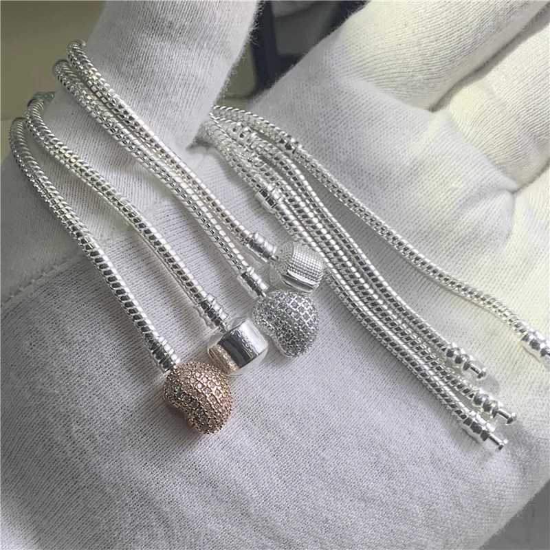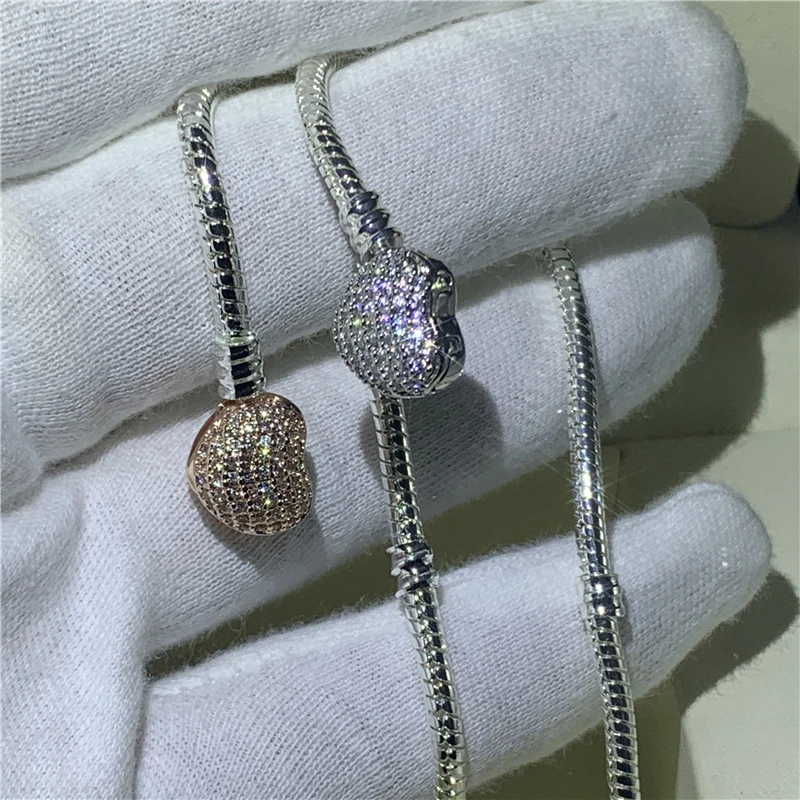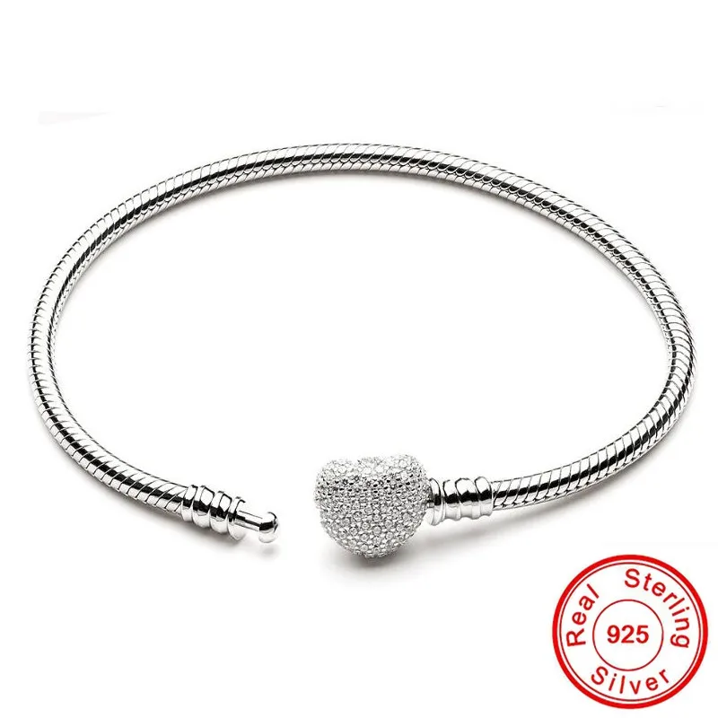 Браслет-змейка женский из серебра 925 пробы, с застежкой в виде сердца