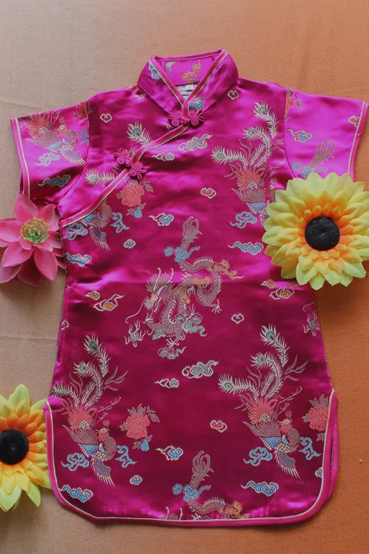 Тип изделия: Cheongsams для девочекТип узора: стрекозаМатериал: полиэстер, атласЦвет: розовый, желтый, красный, черный, синий, небесно-голубой, розово-красный(Может небольшая разница в цвете в соответствии с настройками вашего монитора)Применение: Домашняя одежда, для улицы, вечерние, фестивальные, Хэллоуин