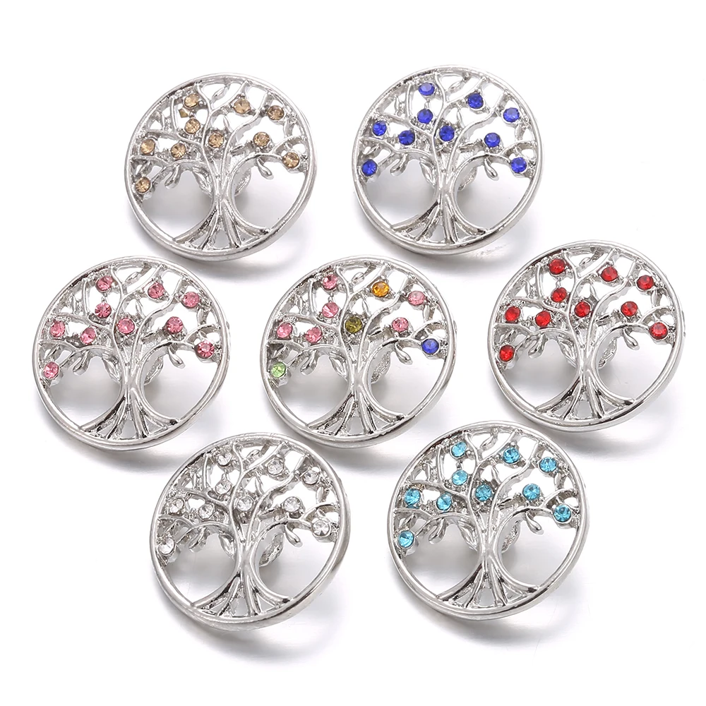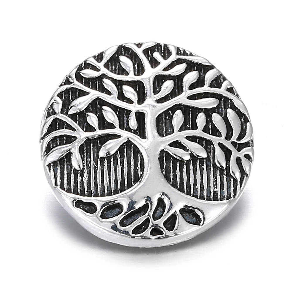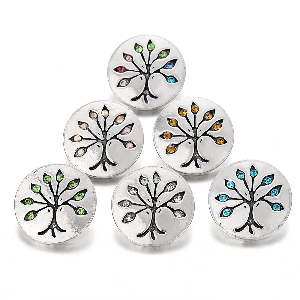6 шт.лот сделай сам, ювелирные изделия, кристаллы, металлическое Дерево жизни, 18 мм, кнопки, подходят для 18 мм, серебряный цвет, металлические кнопки, браслет, ювелирные изделия