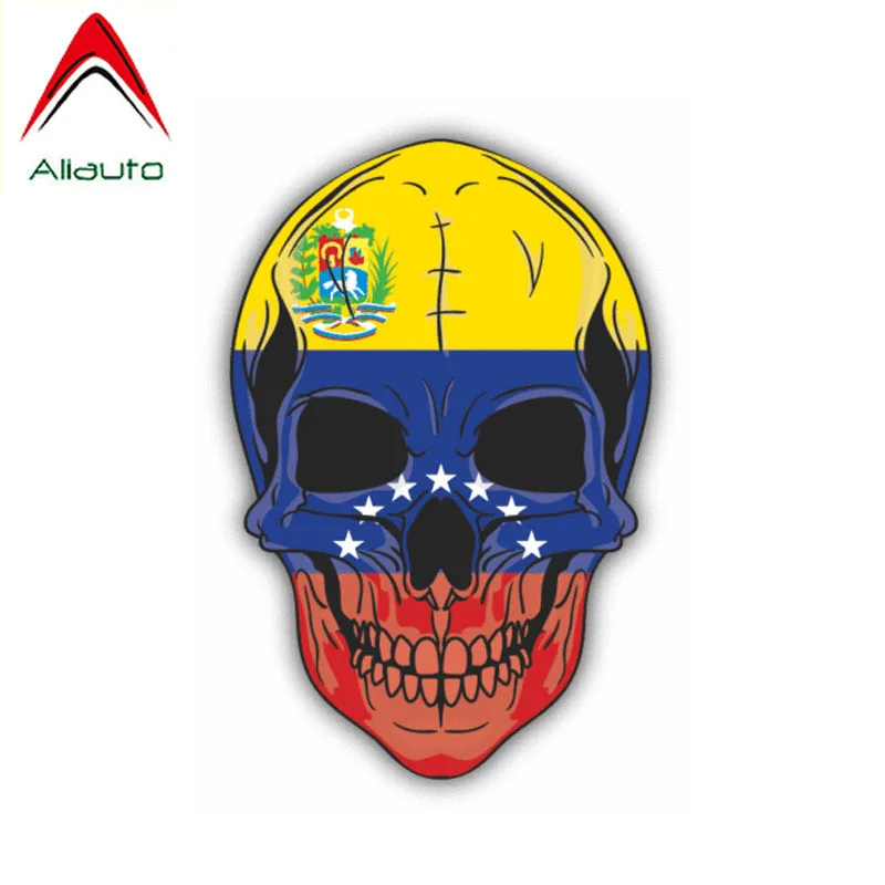 Автомобильная наклейка Aliauto с изображением черепа, Венесуэла, мотоциклетный шлем, автомобильные аксессуары, водонепроницаемая Светоотражающая лампа, 14 см * 9 см