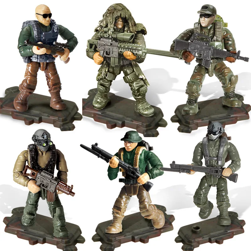 солдатики очень классные. резина плюс пластмасс, но они очень маленькие. высота с мизинец.
