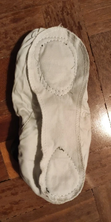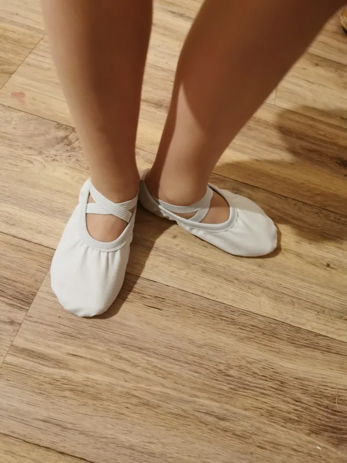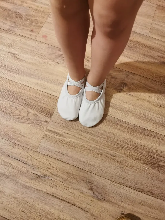 Хорошие балетки. Дочке 5 с половиной лет. Взяла 28 размер по размерной линейке - размер точь-в-точь, совсем без запаса. Я бы сказала, чуть маломерят. Потому что она сапоги сейчас носит 28 размера, и в них влазит ещё носок. Заказала вдогонку 29-ый, а пока потанцуем в этих. В подошву вшито 2 твёрдых подушечки.