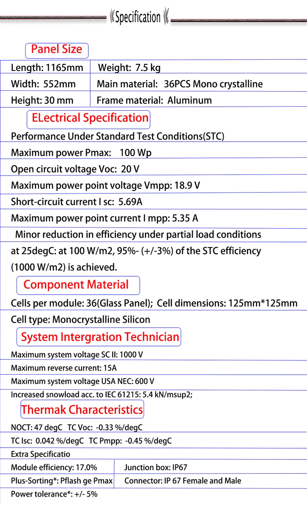 Некоторые продавцы продают панель с 1010 мм * 510 мм * 25 мм, что не соответствует действительности 100 Вт, это только мощность 90 Вт, реальный размер должен быть 1165 мм * 552 мм * 30 мм. Пожалуйста, обратите внимание на это!