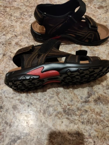 Сандалии сделаны хорошо. Небольшое нарекание к материалу подошвы - похож на литую резину, поэтому обувь тяжеловата.