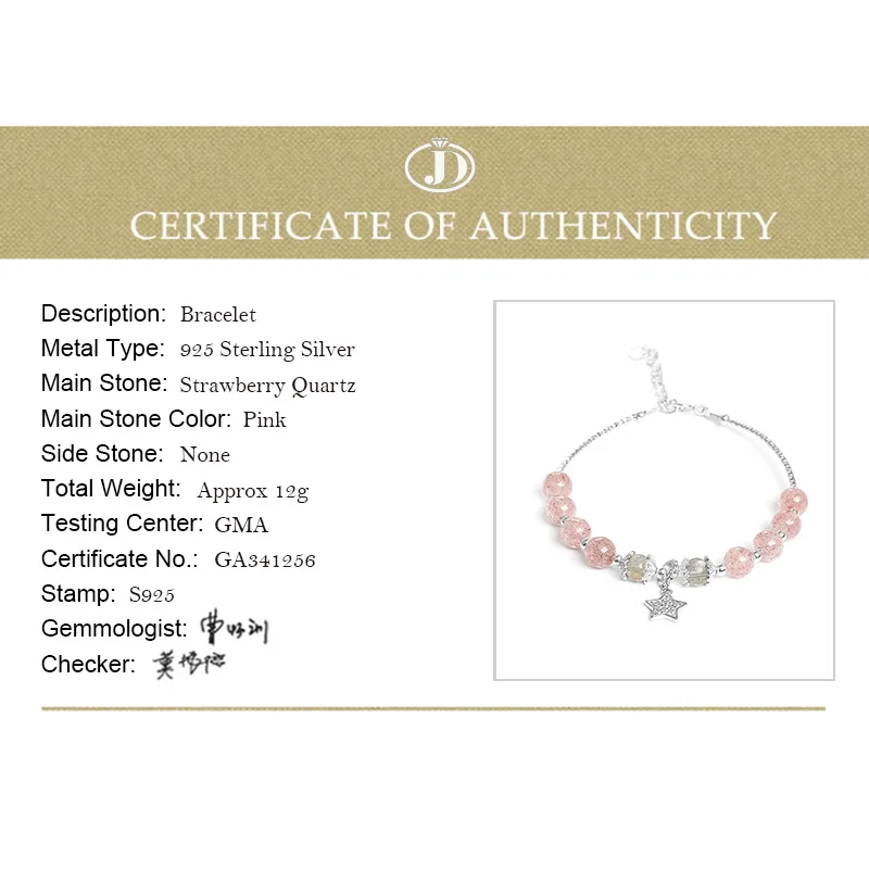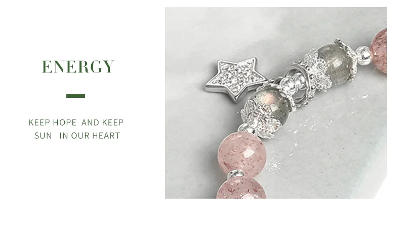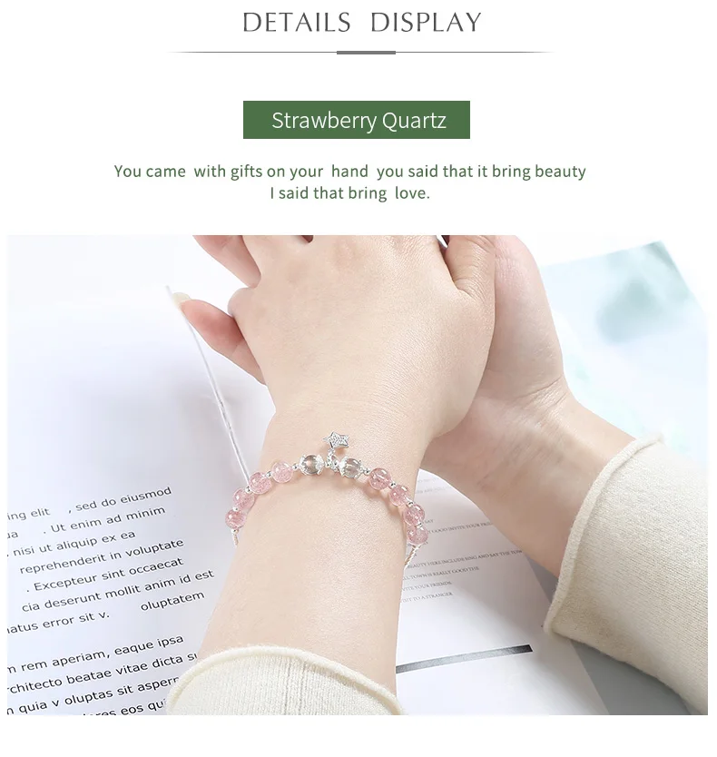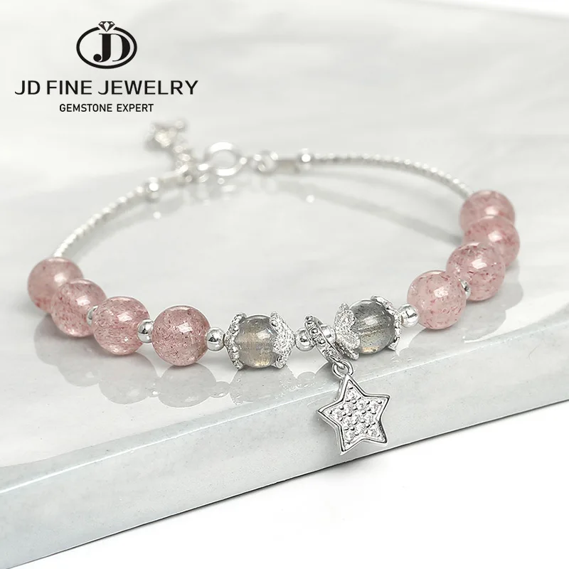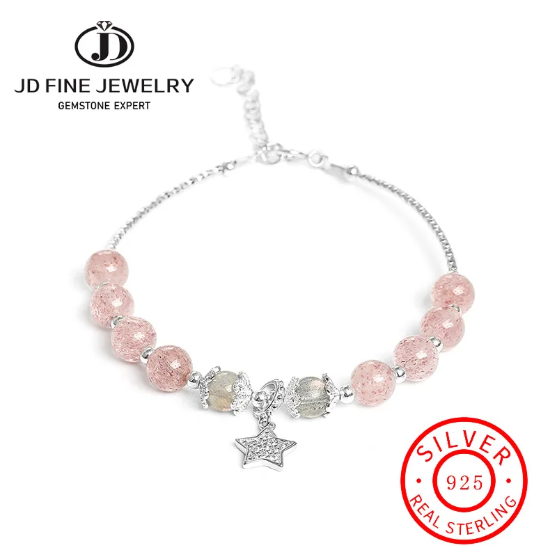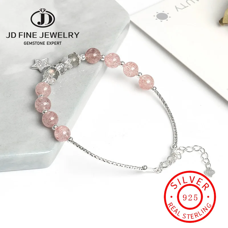Женский браслет из серебра 925 пробы, с клубничным кварцем