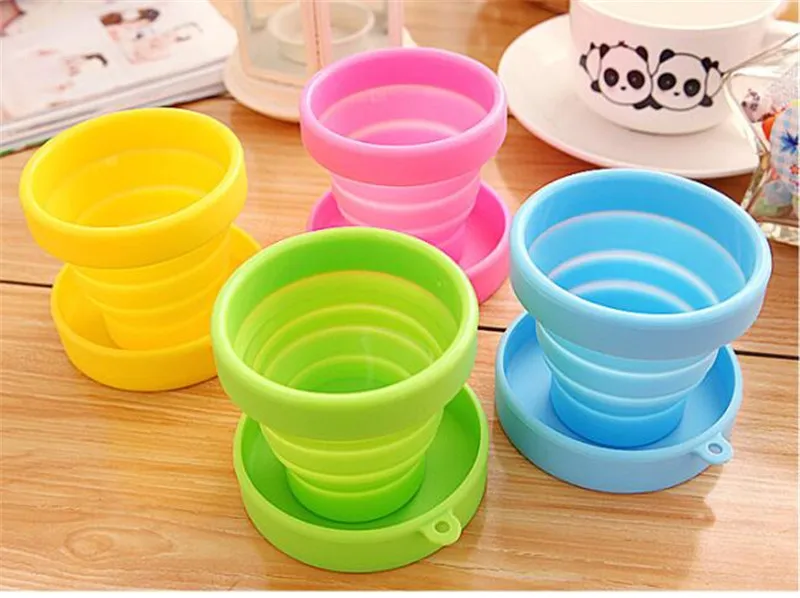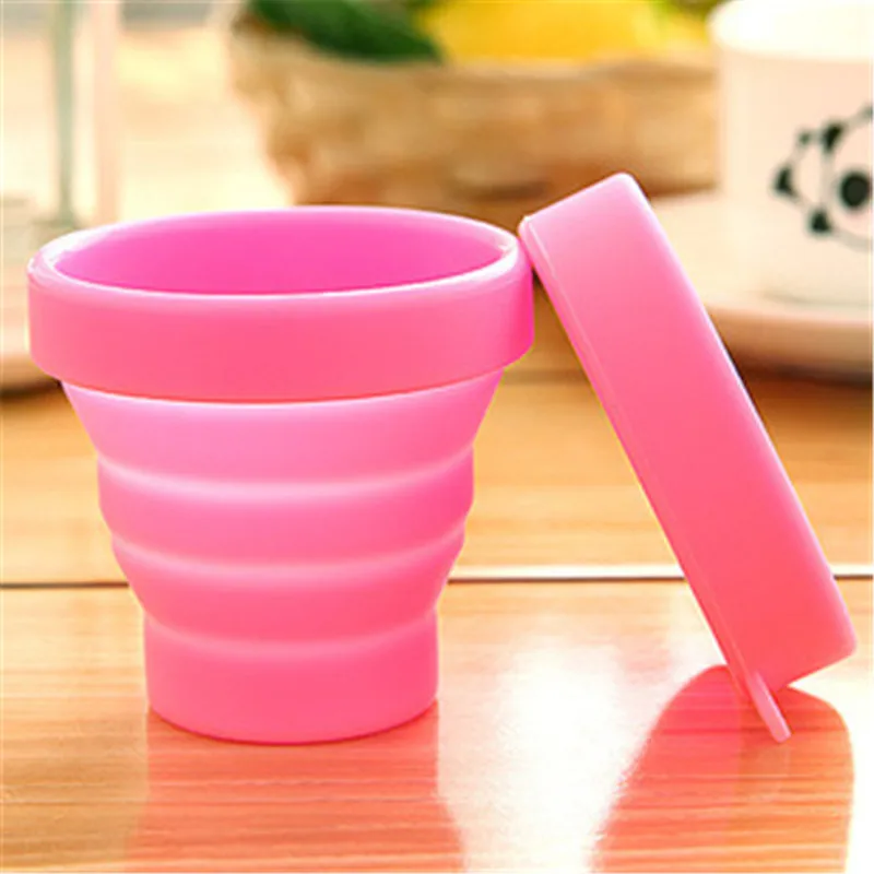 Портативная Складная силиконовая чашка с крышкой, телескопическая складная чашка для питьевой воды для путешествий, кемпинга, 200 мл