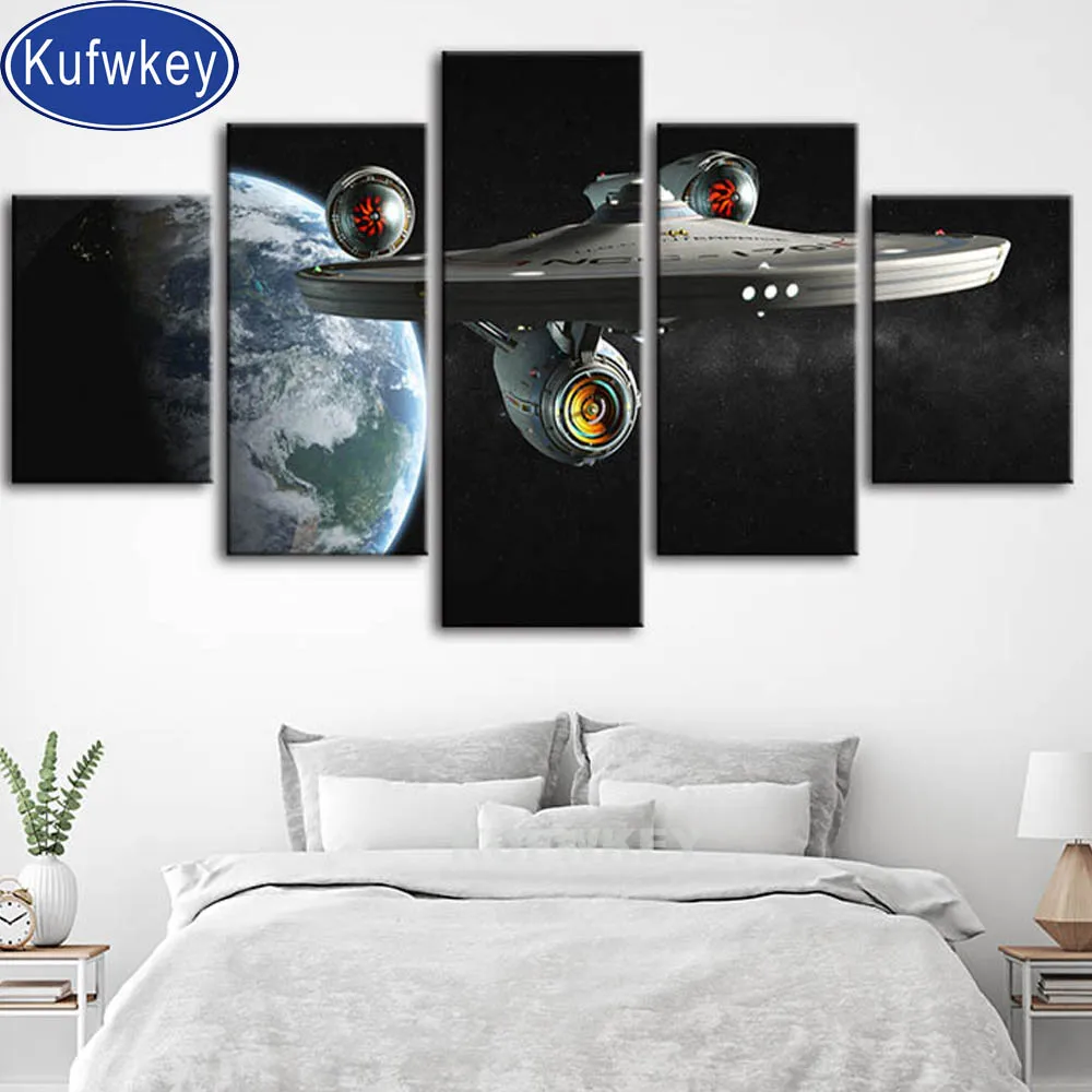 5D сделай сам, алмазная живопись, космический корабль, полная дрель, круглая 3d Алмазная вышивка, 5 шт., 3d вышивка крестиком, фон для декора,