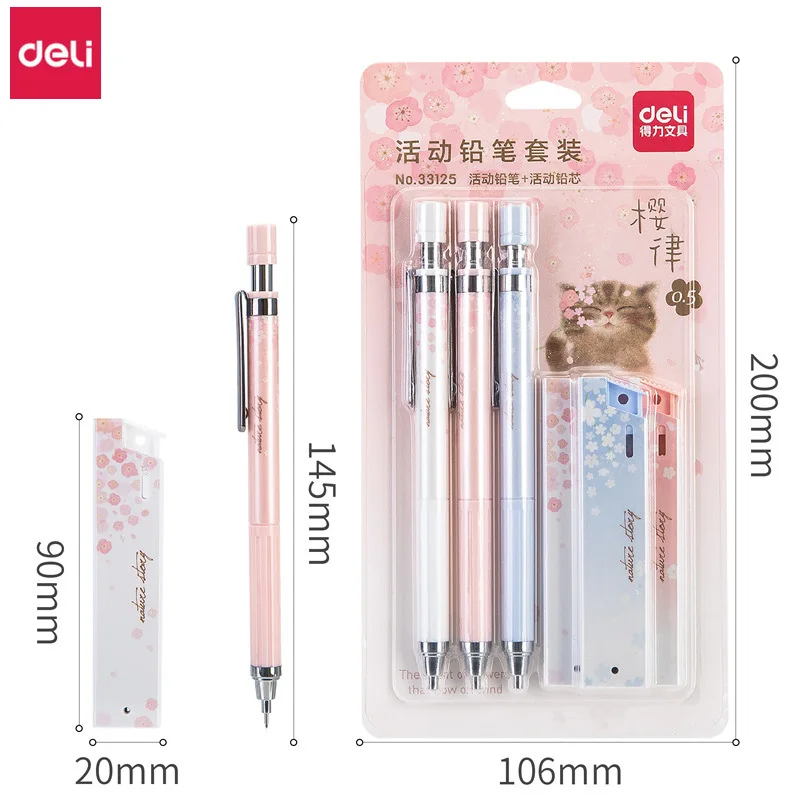 Набор механических карандашей Deli 0,5 мм с вишней и Сакурой, автом...