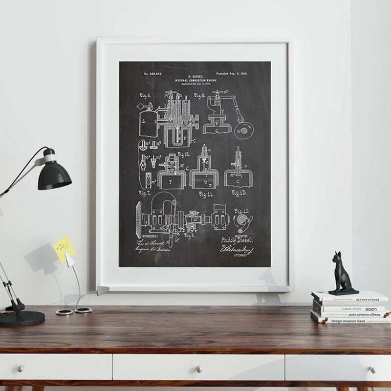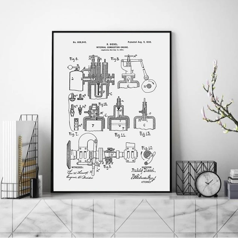 Винтажный постер для автомобиля с патентованными принтами, подарок инженера, Модель двигателя автомобиля, художественная картина, Настенная картина для мальчиков, декор для стен