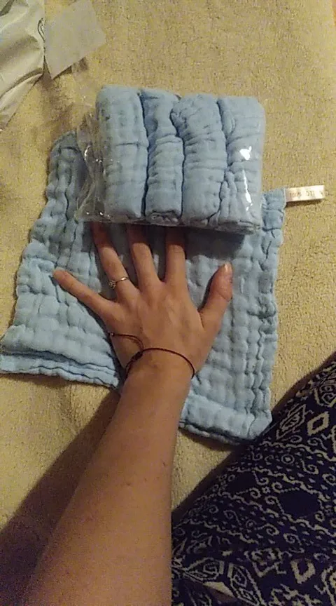 Aunque el empaque no se parece en nada a la foto, el producto vino en buenas condiciones, son 5, son blancas y suaves. Me gustaron. Ideal para limpiar a mi bebe