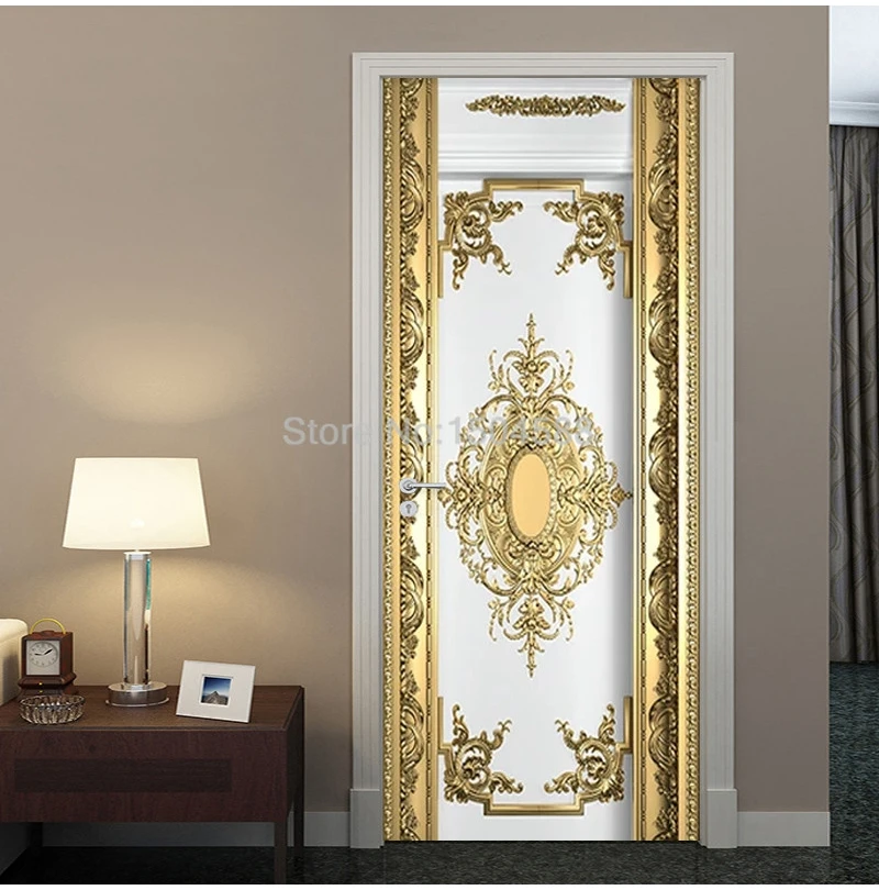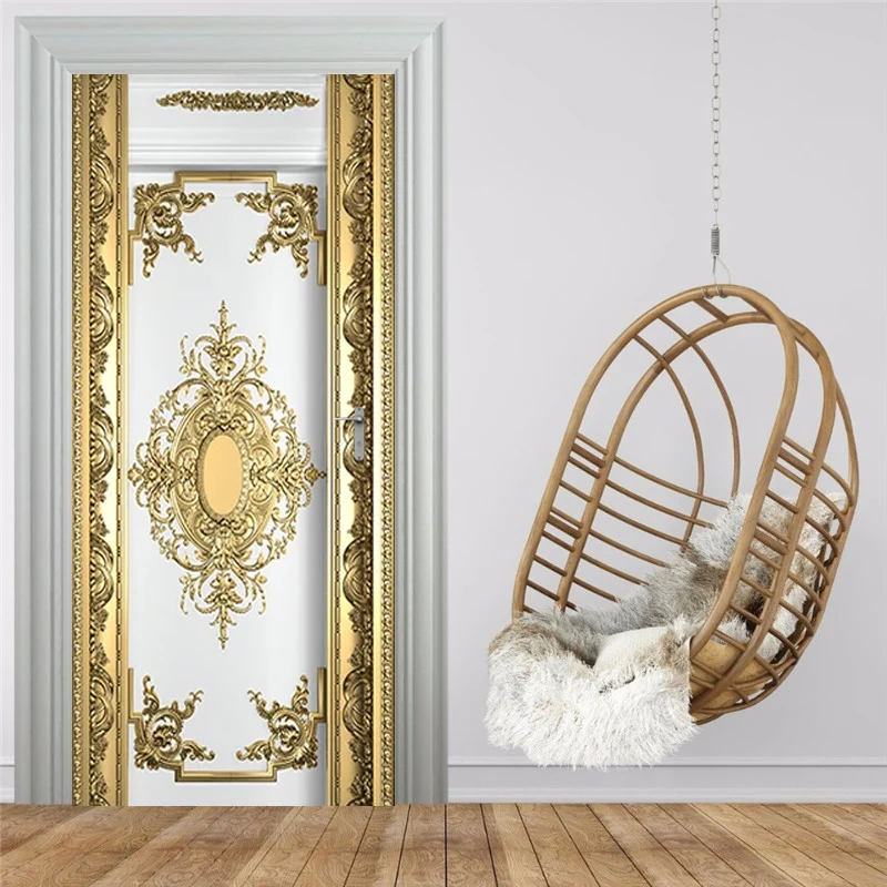 Самоклеящаяся наклейка на дверь в Европейском стиле, Роскошная золотая резьба, обои для гостиной, спальни, плакат, Настенная роспись, водостойкая наклейка из ПВХ