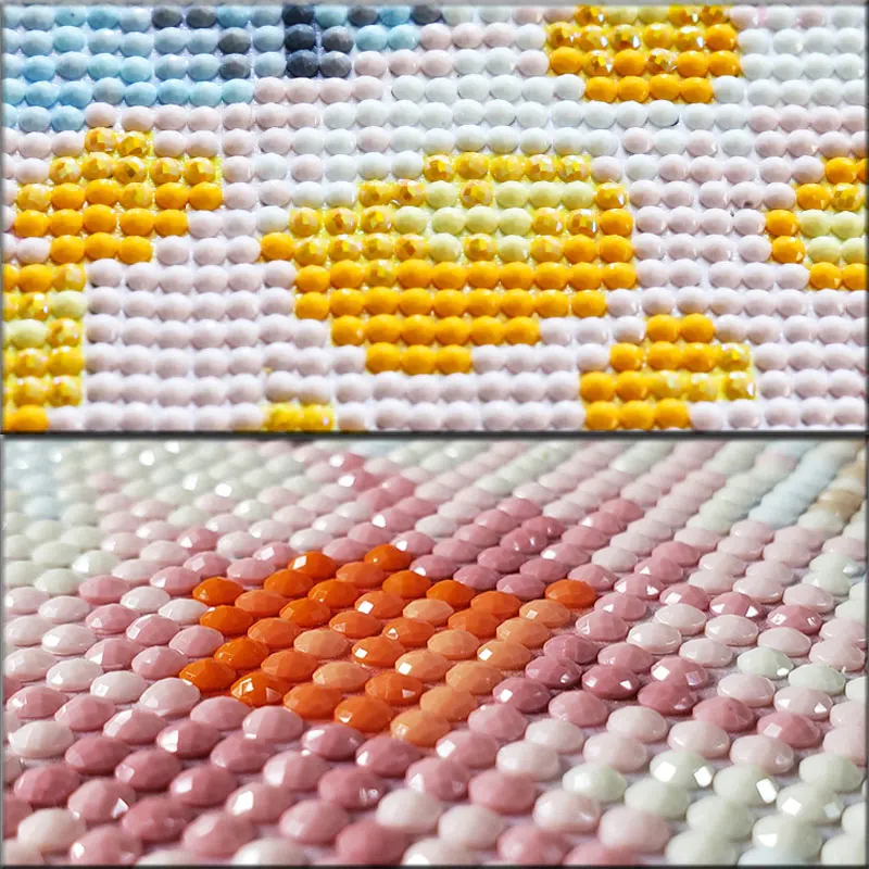 6. Для того, чтобы создать идеальную алмазную картину, рисунки, собранные в одном месте, каждый ряд символов не обязательно оставаться прилипающими алмазами.