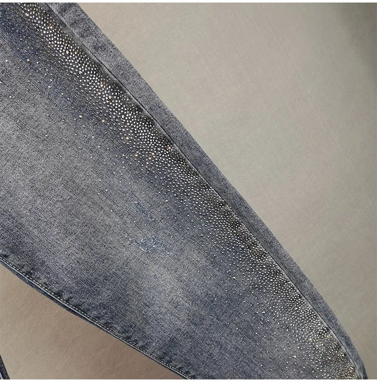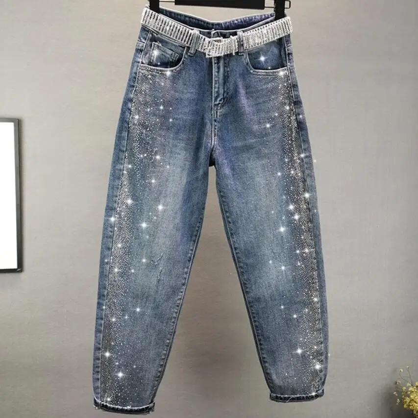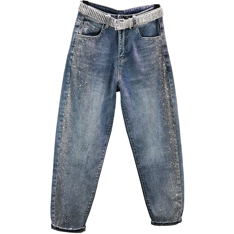 Горячие Стразы женские джинсы 2021 Весна Новая мода Высокая талия свободные брюки размера плюс 26-32