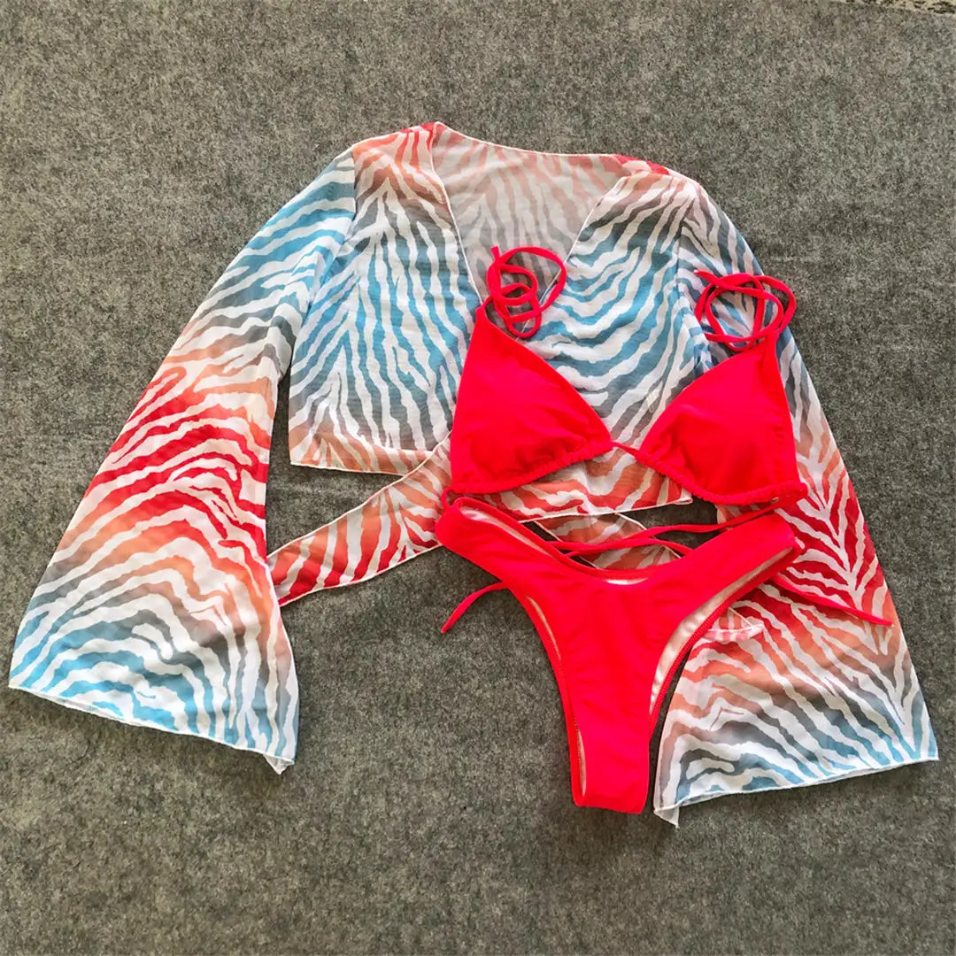 3 шт., сетчатый женский купальник бикини с длинным рукавом, женский...