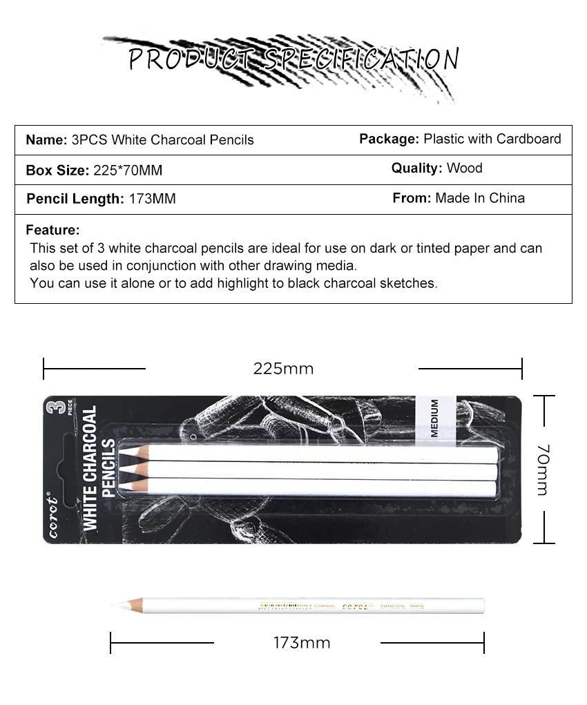 Набор угольных карандашей для рисования, 3 шт., товары для рукоделия